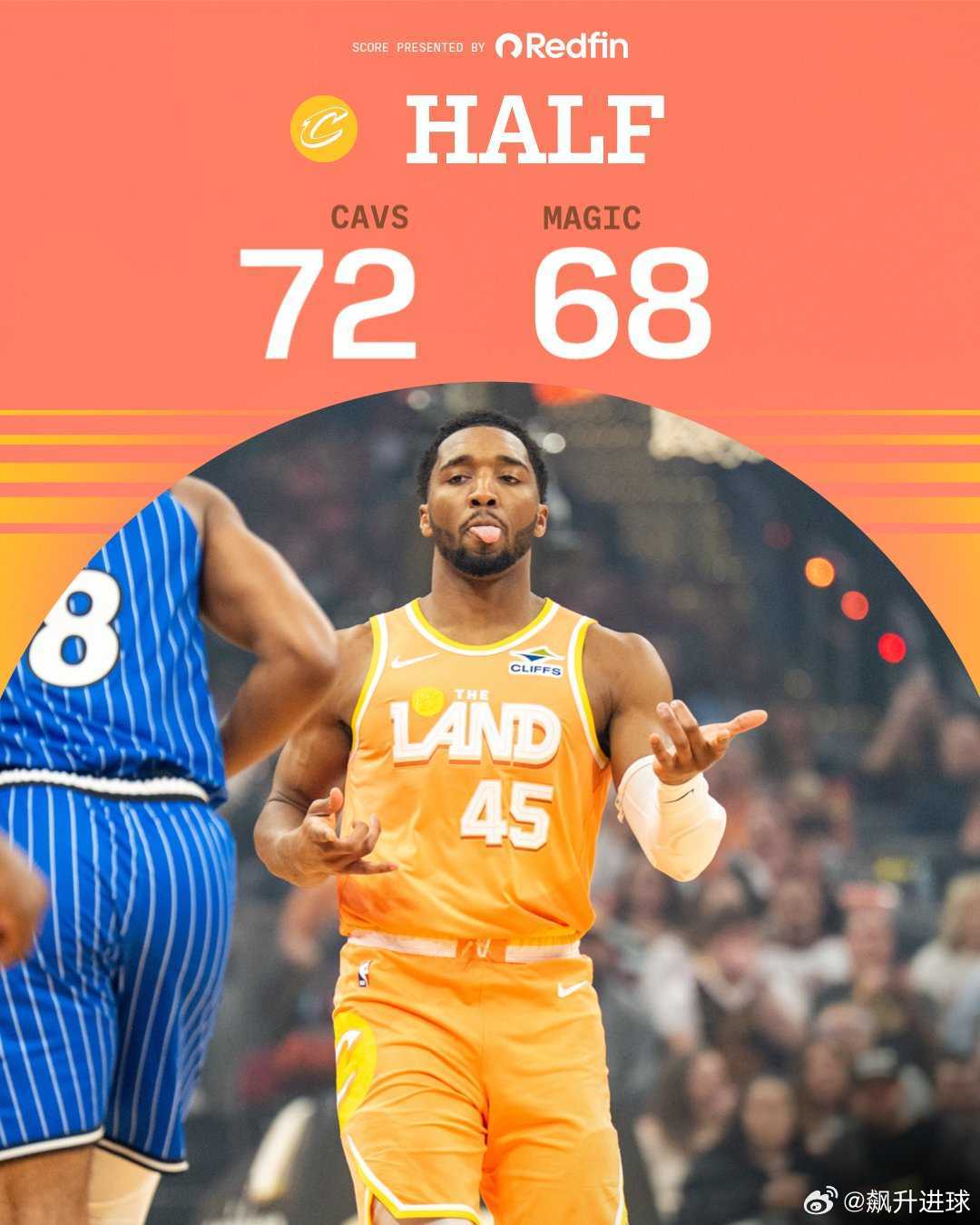 骑士队的哈登上半场得到22分和4次助攻,米切尔得到16分,莫布里得到10分、6个篮板和4次助攻;魔术队的班凯罗得到21分,贝恩得到12分,J-卡特得到10分。