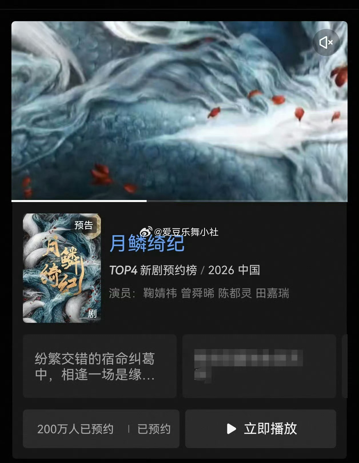 《月鳞绮纪》预约破200万恭喜鞠婧祎 露芜衣🎉月鳞绮纪优酷预约量破200万