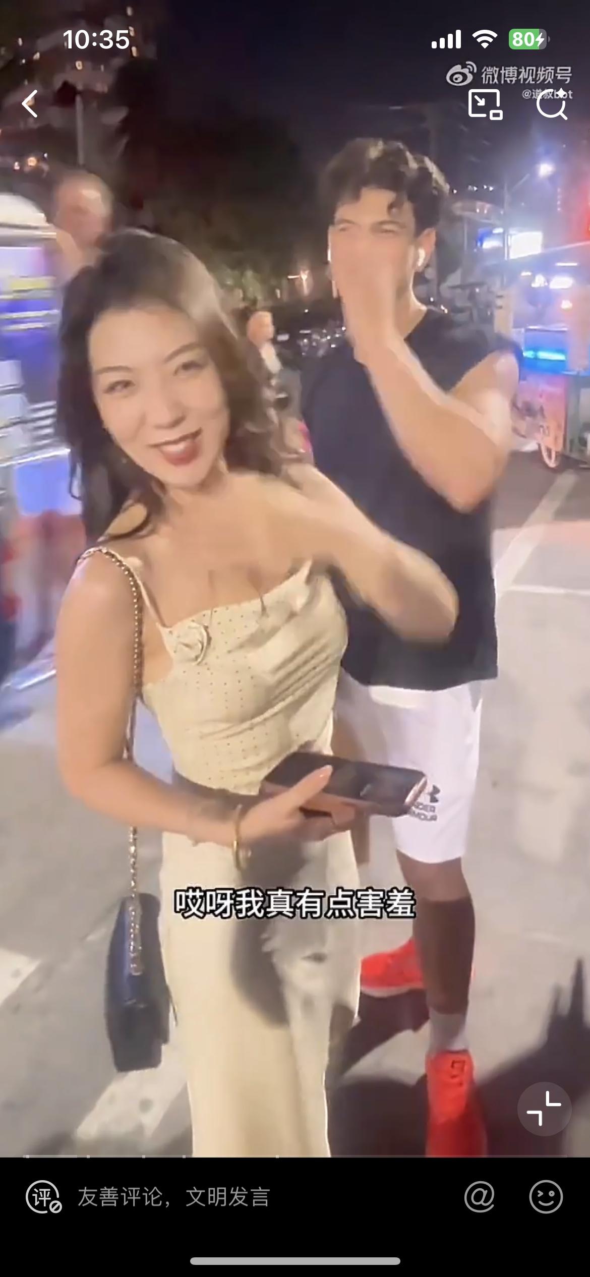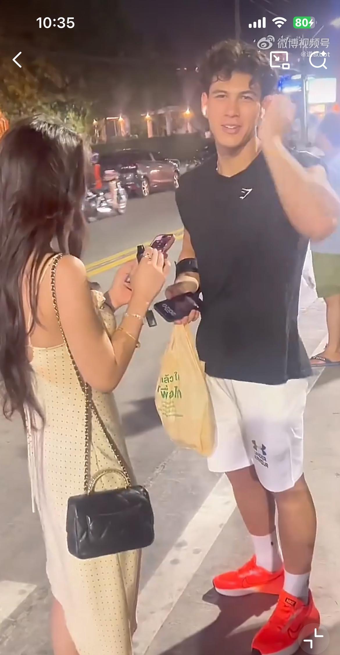 中国女孩泰国街头认识外国帅哥的全过程,小伙太会撩了,小伙直接说你是我认识的第一个中国女孩,直接把这个中国女孩整害羞了。小伙是泰国和意大利混血的,身材高大健壮帅气,今年 18 岁,中国女孩见到这个小伙,似乎有点走不动路的意思。为什么在国外这些中国女孩见到外国男孩都表现出一副娇羞可人的样子,因为罩着外国人的光环,有一种天生的魔力,能让这些女孩沦陷,不管是吃饭约会,这些女孩都表现得非常热情,从不跟外国男友斤斤计较。