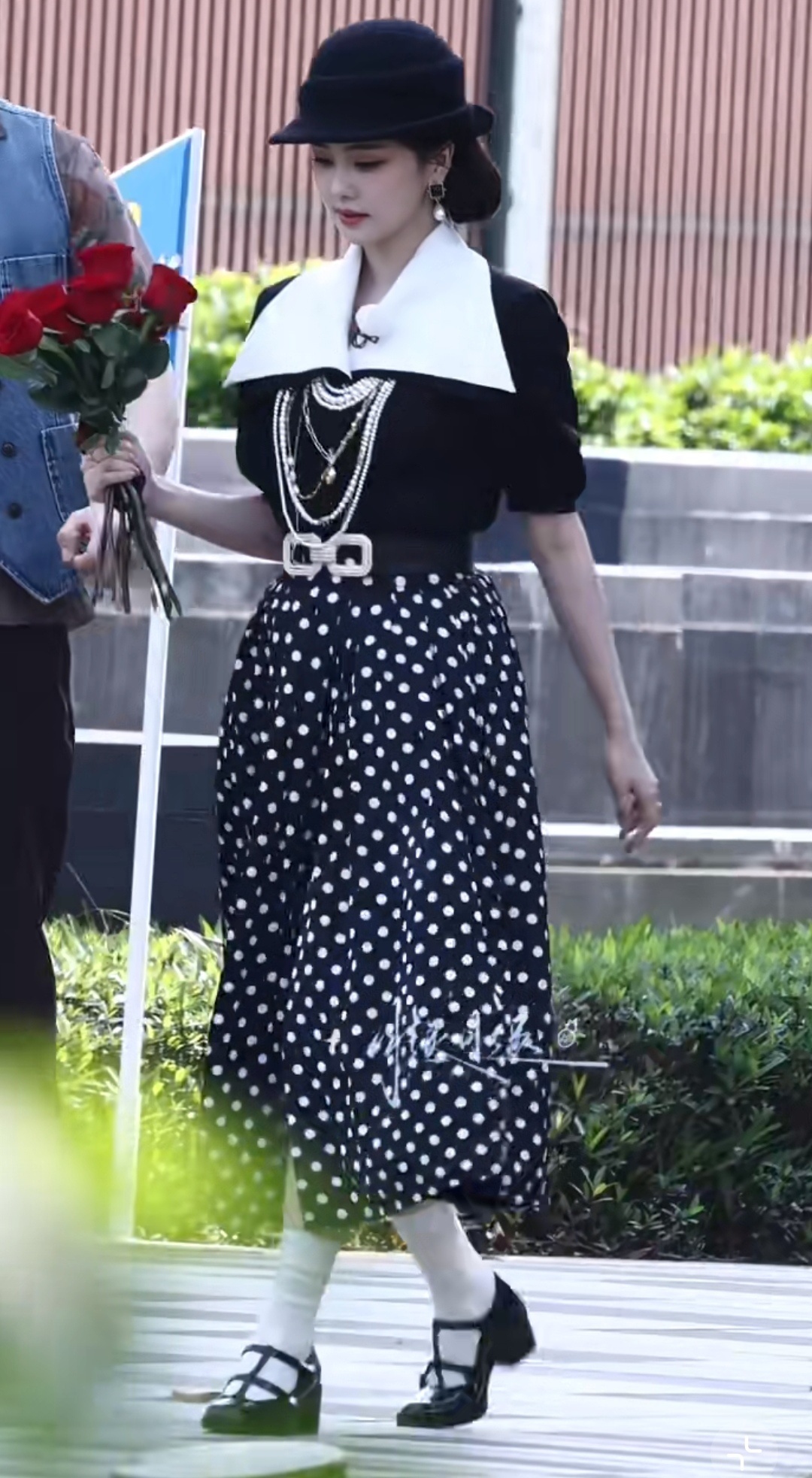 白鹿是美玲吧!奔跑吧出装完完全全民国大小姐!太有复古画报感了!黑帽+波点裙的搭配,白鹿把留洋归国大小姐的优雅和灵动都拿捏住了,白鹿欠我一部民国剧! 白鹿手上拿了一束红玫瑰