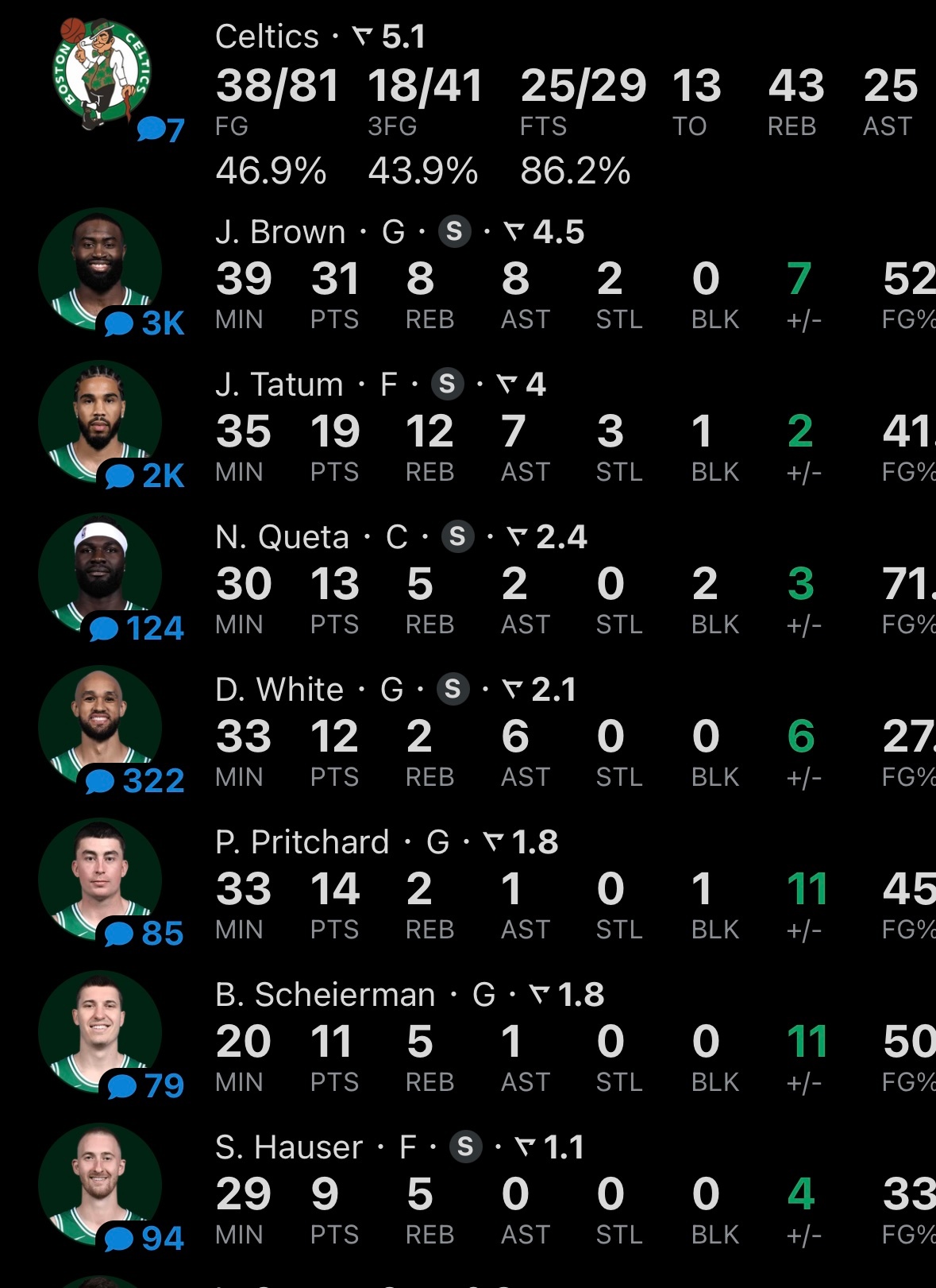 雷霆109-119不敌凯尔特人。 亚历山大33分8助攻,多尔特14分5篮板。布朗