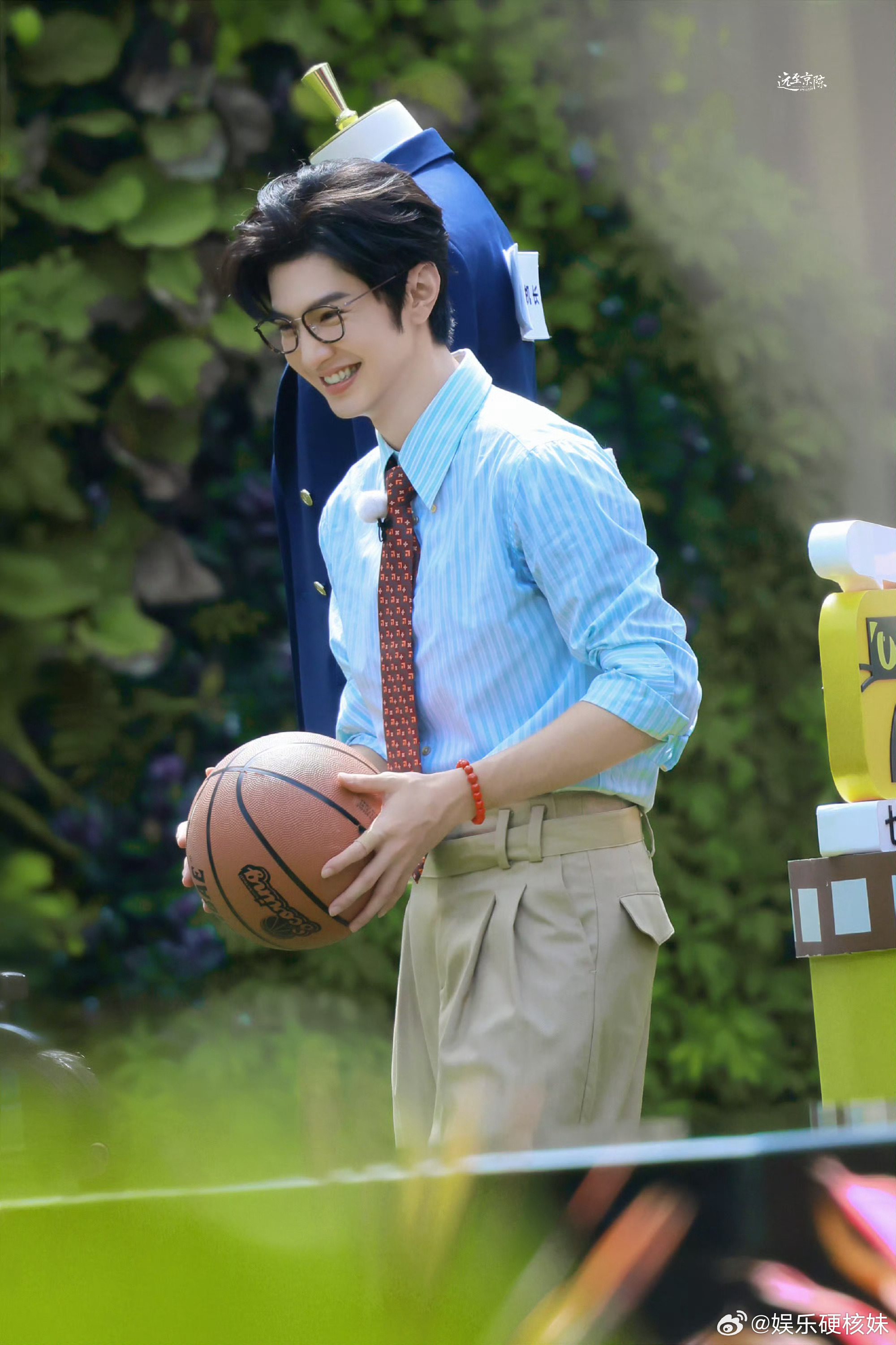 陈哲远奔跑吧造型细节控狂喜!浅蓝条纹衬衫衬得清爽干净,卡其阔腿裤拉长身形比例,黑框金丝眼镜+红色手串点缀,把民国知识分子的儒雅感狠狠拿捏,连篮球道具都透着少年气!陈哲远民国学长造型陈哲远留洋学长造型奔跑吧路透