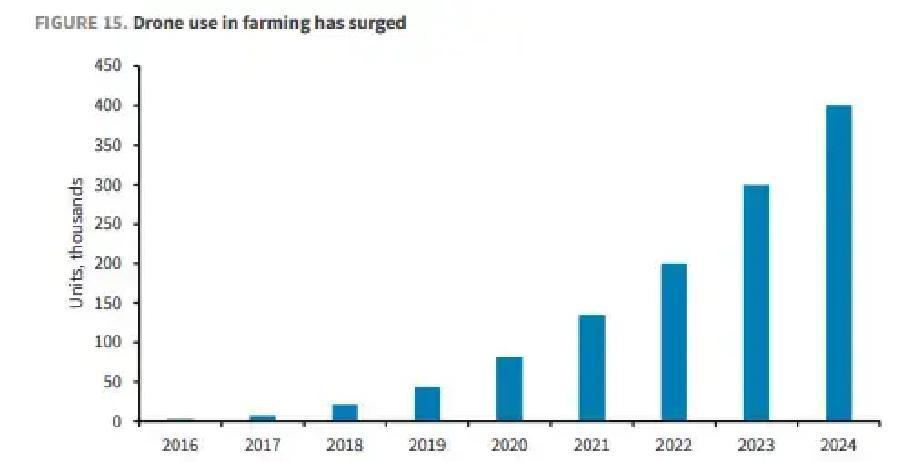 2025年全球无人机市场刚破400亿美元大关,2035年却直奔2500亿美元,这条从战场杀出的产业链真被算力、电力和矿产彻底卡住脖子了吗? 过去五年,无人机市场规模直接翻倍,单机价格虽然降到2万到5万美元,但真正烧钱的不再是硬件本身,而是背后的算力投入、能源供应和关键矿产。低成本一次性无人机能快速上规模,靠的就是AI把导航、避障和蜂群协同从硬件转到软件上,让“多快密”变成现实。 军用需求像加速器一样推着行业往前跑。乌克兰无人机产量从2023年的约80万架,猛增到2025年接近500万架,其中200万架是FPV小型系统。中东冲突初期几周,无人机打击次数就逼近2000次。高价值专用平台单价能到几百万美元,长航时多任务,而低成本平台则主打短程一次性使用。 全球军费开支2024年达到2.7万亿美元,NATO国家在设备和研发上的支出占比从2014年的24%升到2025年的30%。数据中心用电已经占全球1.5%到2%,预计2035年会爬到4.4%左右,约1600太瓦时。问题不光是总量够不够,而是电能不能精准送到AI需求集中的节点。 无人机硬件从电机磁体到传感器,全链条都离不开稀土等关键矿产。中国在52种关键矿产中主导40种,稀土14种元素供应份额超过90%。去集中化在推进,但新产能真正落地的项目不多,从勘探到商业化往往要10到20年。 军用只是起点。民用占比预计从现在的55%升到2035年的65%,农业、仓储和配送将成为新主战场。农业无人机喷洒能把成本降约70%,作业时间缩短90%以上,用水量也降约90%。仓库盘点时间能减少50%。末端配送已经出现平均19分钟送达的规模化案例。 专利数量从2014年不足200件,暴增到2024年接近8000件,足足45倍。这背后是国防研发和商业应用双轮驱动。整个Physical AI领域,包括人形机器人、自动驾驶和工业自动化,2035年加起来奔向万亿美元,无人机被看作第二大板块,基准规模2500亿美元。 无人机正在从单纯战场工具,变成连接国防预算、AI资本开支、能源电网和矿产资源的超级节点。军用先行带来成本下降,民用扩散再放大生产率提升,这条路径让行业不再只跟着防务周期走,而是真正扎根到日常生产力里。未来增长的关键,就藏在这些看得见和看不见的约束与突破之间