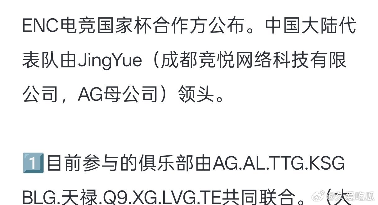 瓜友速报 ENC中国代表俱乐部名单出了