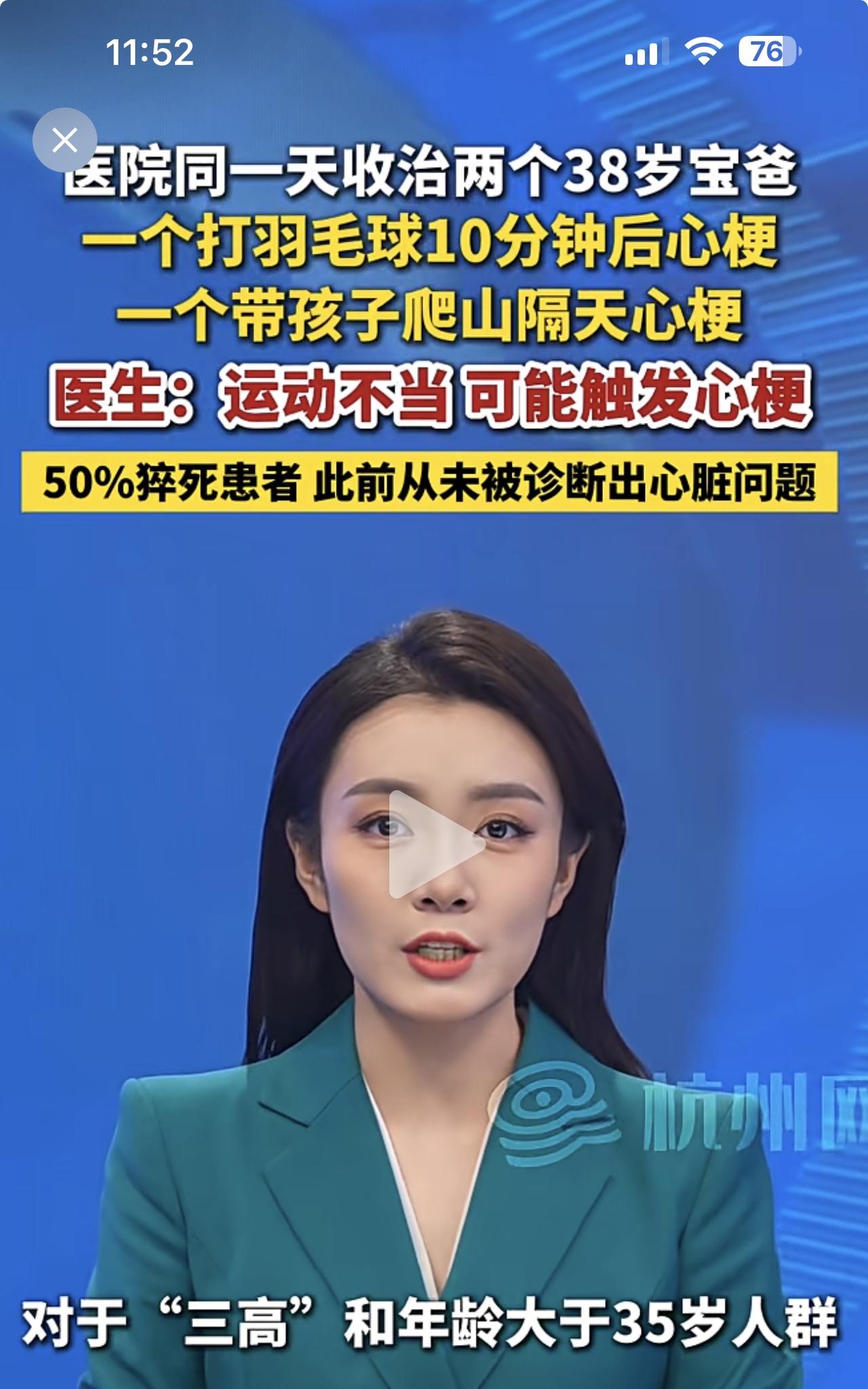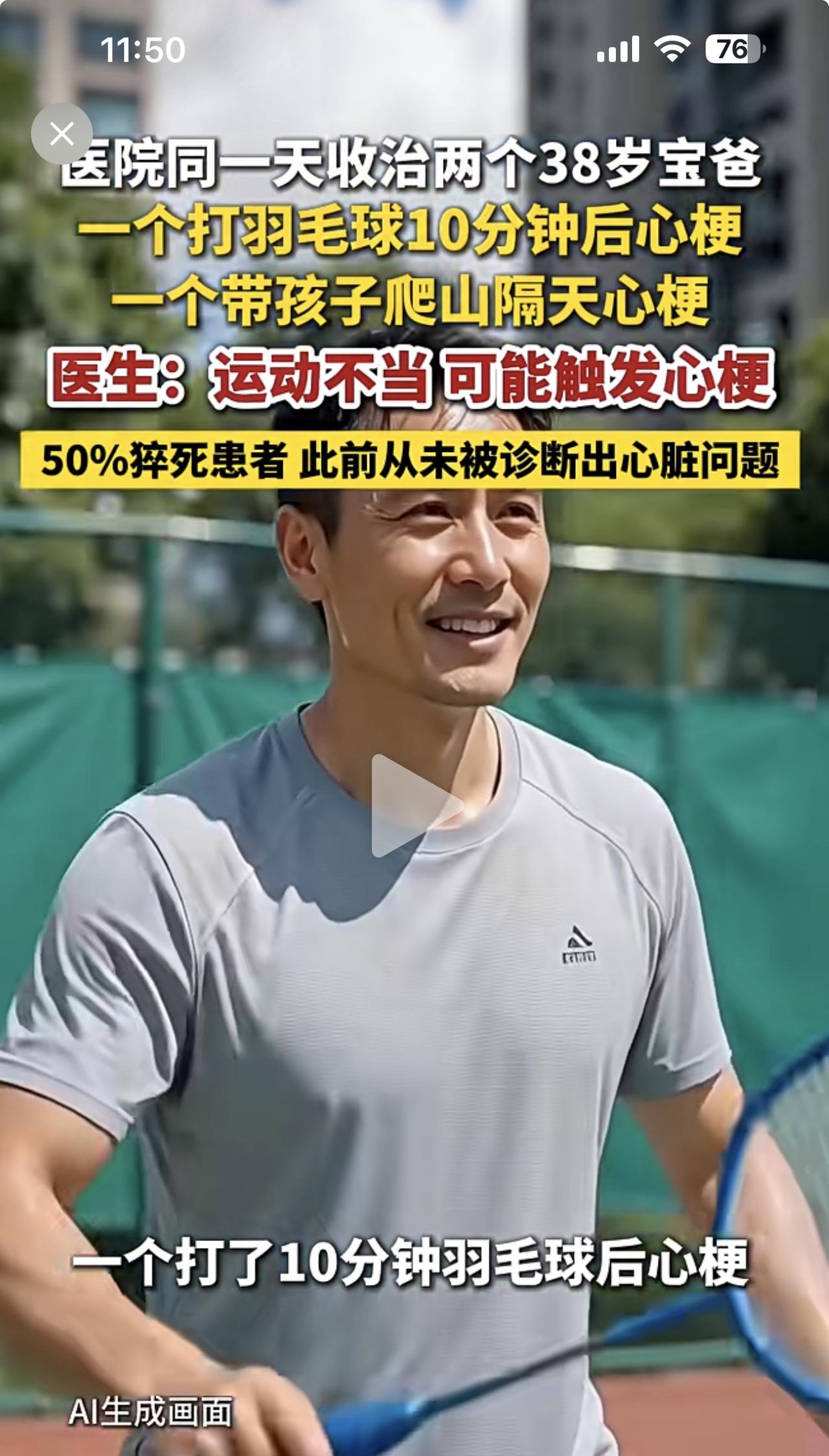 同一天,同一医院,收治两名同龄38岁宝爸,同一种病情——心梗!值得所有成年人警惕。 38岁就心梗!说明了什么情况?年轻人的饮食习惯存在很大问题,长期高油高脂高糖饮食,导致“三高”“斑块”等心脑血管疾病提前到来,因此,心梗发病越来越年轻化。 由于心脑血管疾病有极强的隐蔽性,很多人平时并没有什么特别的感觉,也就没有引起足够重视。此病经常在运动期间或者运动后发病,让人猝不及防,比如张雪峰!比如新闻报道中的两人。 中青年人是时候关注自己的健康了,该体检的时候要体检,不舒服就早点去看医生,不要自以为是,更不要讳疾忌医,等到最后一刻那就后悔莫及了。