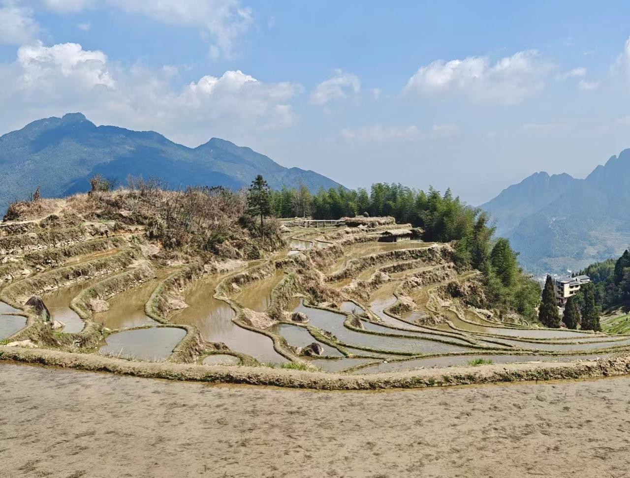 分享一组梯田美景图片层层梯田如大地的指纹,盛满春日天光,山风漫过,藏着最质朴的烟火与希望。