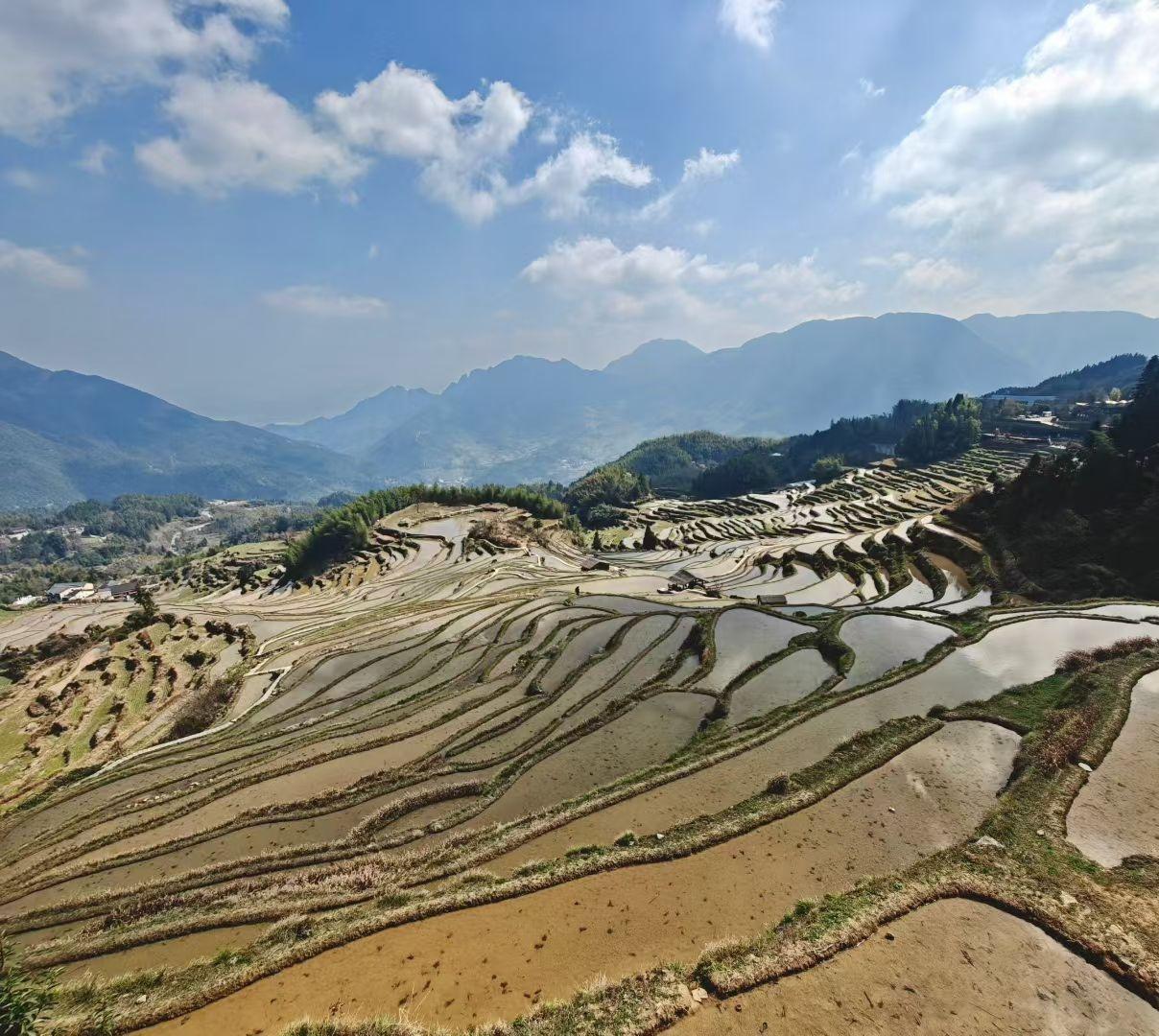 分享一组梯田美景图片层层梯田如大地的指纹,盛满春日天光,山风漫过,藏着最质朴的烟