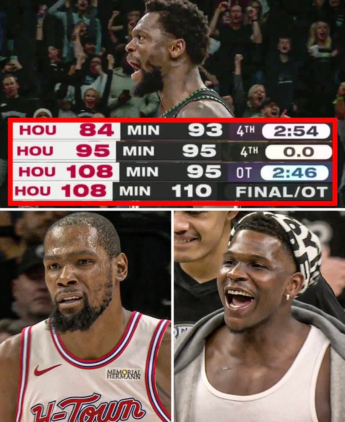 领先13分被森林狼逆转:加时赛还剩2分49秒时火箭108-95领先,最终被对手打出15-0。