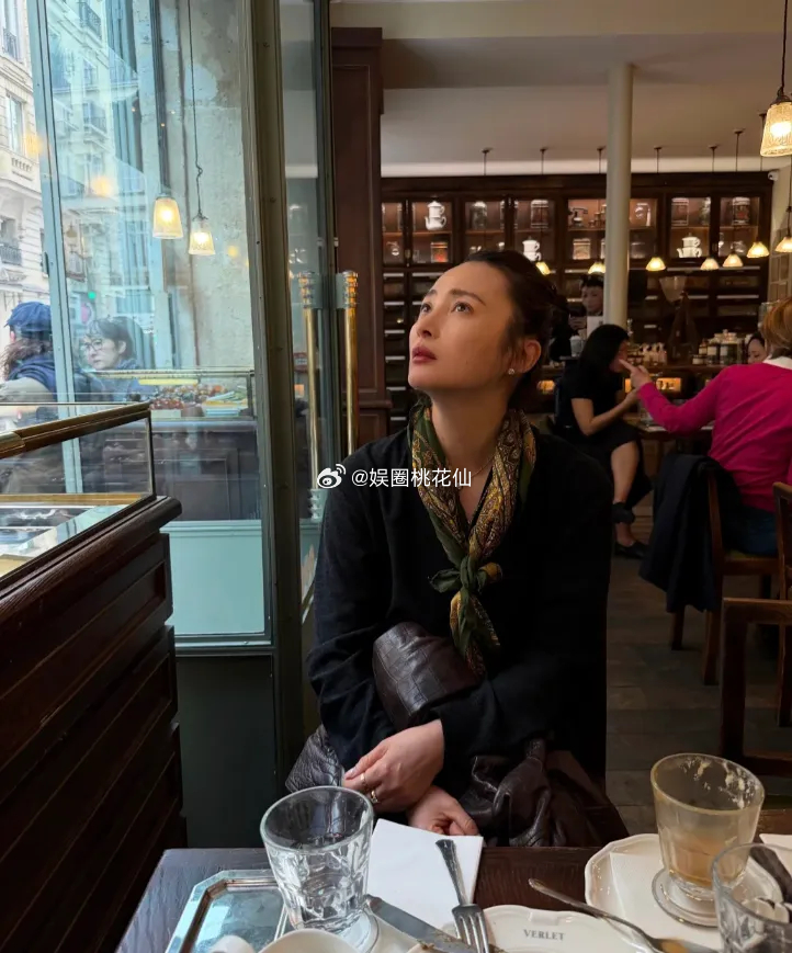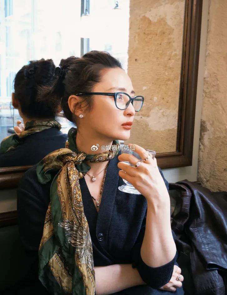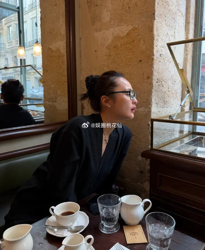 51岁蒋勤勤自信晒原图照,当日喝咖啡的蒋勤勤佩戴着一副黑色粗框眼镜,镜框线条硬朗,为整体造型增添了几分知性与文艺气息。