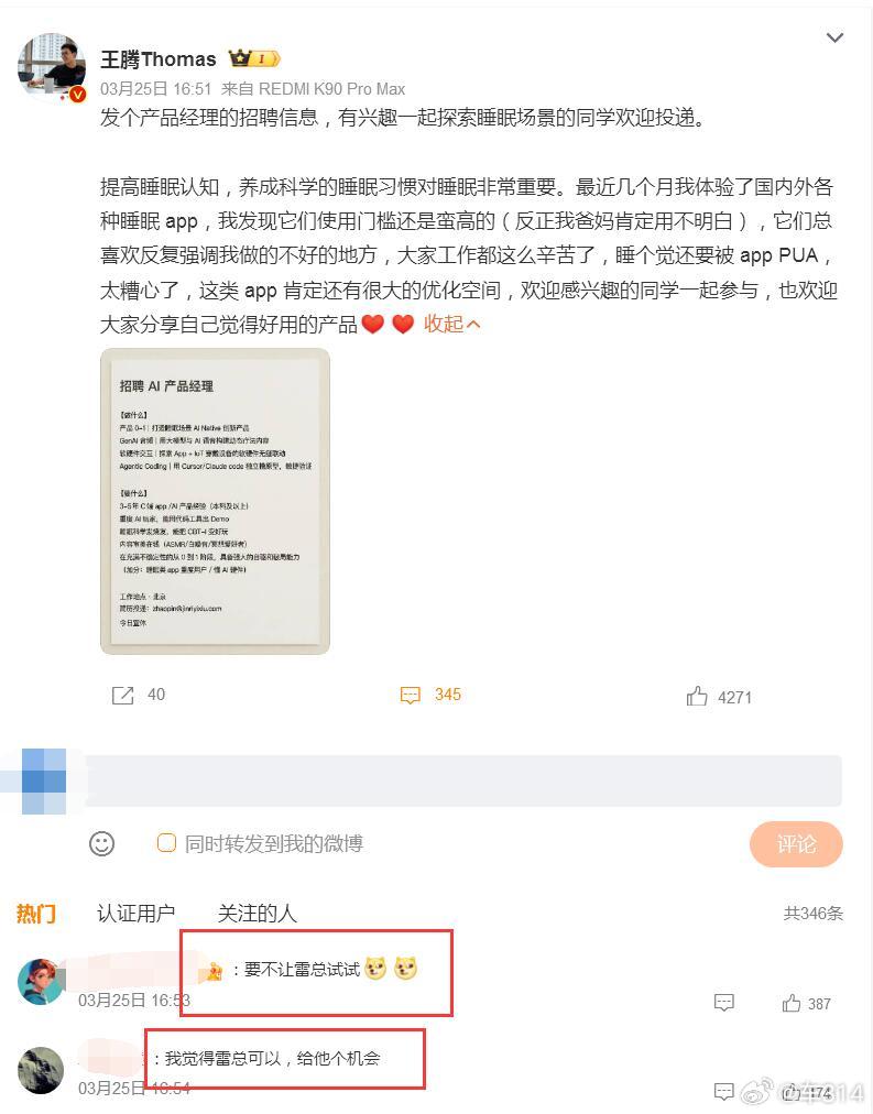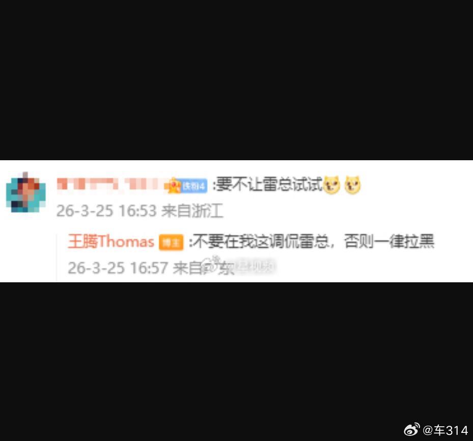 虽然说咱不知道王腾到底为啥离开了小米,虽然他已经不在小米任职,他完全可以对网友们调侃雷军的事情睁一眼闭一眼,但他还是让大家不要调侃前上司。个人感觉,就像是李菁之于德云社、郭德纲的意思?道不同各自为谋,只是理念和想法之间有分歧罢了,尊重和敬意还是在的。王腾警告调侃雷军一律拉黑王腾不许网友拿雷军开玩笑