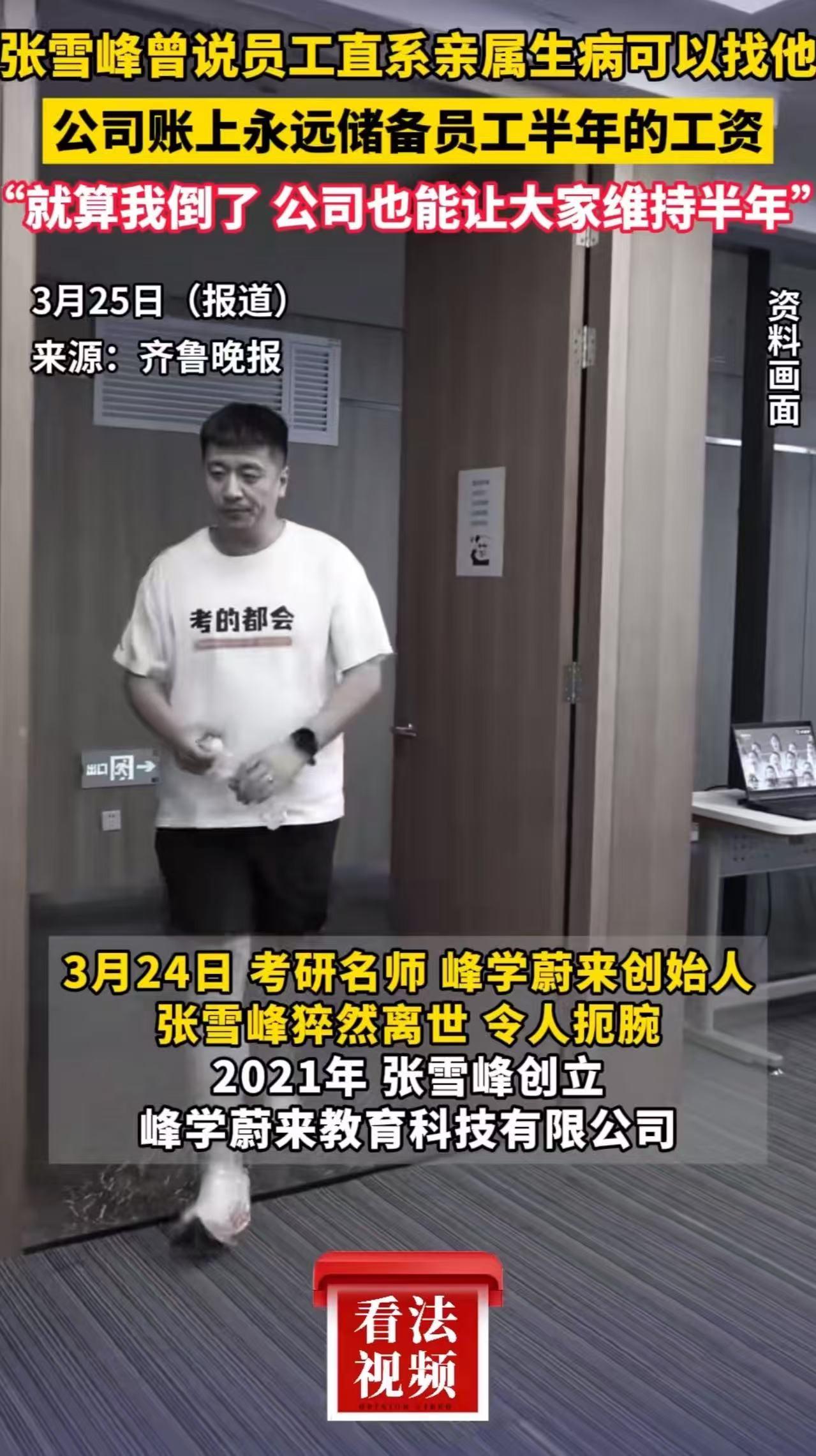 张雪峰去世后,一查他生前的的操作,惊呆了!他公司下的员工享受的福利待遇,简直秒杀一众企业,比公务员的待遇还要好!网友:这才是真正的中国好老板! 在这个“老板画饼、员工吃土”的年代,我们听惯了太多关于裁员、欠薪、996的故事。 但最近,随着教育界“顶流”张雪峰的骤然离世,他公司内部的一份“秘密账本”被曝光,瞬间让全网破防,无数打工人红了眼眶。 原来,真的有老板,是把员工当成亲生孩子来宠的。 当别的公司还在为“大小周”扯皮,还在用“狼性文化”逼迫员工加班时,张雪峰的公司早就实现了让人羡慕的“神仙作息”。 每周三固定休息,加上周末双休,员工一周只上四天班! 想象一下,当其他行业的同行还在早高峰的地铁里被挤成沙丁鱼,张雪峰的员工已经陪着孩子去公园遛弯,或者在家睡个懒觉充好电,准备迎接新一周的挑战。 这哪里是上班?这简直是在生活! 如果说休假只是“开胃菜”,那张雪峰在真金白银上的投入,简直就是“满汉全席”。 在公司,生孩子不再是负担,而是喜事。生一胎奖2万,二胎奖4万,三胎直接发8万! 这笔钱,实打实地打进了员工的卡里,帮他们挡住了育儿路上的风雨。 到了年底,更是让人眼红。去年,公司年终奖加绩效狂发2000万,人均到手近6万。 对于很多普通家庭来说,这相当于大半年的收入,而在张雪峰这里,只是对一年辛勤付出的基本尊重。 更绝的是住房问题。入职满两年,如果你想买房却凑不够首付?别怕,公司直接借给你与年薪等额的无息借款! 没有套路,没有利息,只有信任。 春节假期长达24天,还有带薪寒暑假……这些在别人眼里“痴人说梦”的福利,在这里却是触手可及的日常。 然而,真正让所有人彻底破防的,不是这些明面上的福利,而是张雪峰藏在心底最深处的温柔。 早在几年前的一次直播中,他曾半开玩笑地说:“就算有一天我倒下了,公司也能保证大家半年的工资照发。” 当时,很多人以为这只是“峰哥”为了博眼球放的卫星,是老板惯用的“画饼”技巧。 直到他突发疾病离世后,财务人员整理账目时,所有人都惊呆了。 公司账户里,真的单独封存着一笔2000万的现金流! 这笔钱,专款专用,雷打不动。 张雪峰生前反复叮嘱财务:“这是员工的‘保命钱’。万一哪天我不在了,公司乱了,这笔钱要保证200多名员工能拿着全额工资,安安稳稳地过渡半年,去找新的出路。” 那一刻,办公室里的成年人哭成了孩子。 在这个老板跑路频发、欠薪常态化的职场寒冬,有谁会提前为自己的员工准备好“后路”? 只有张雪峰。 他用生命最后的时光,为员工撑起了一把即使他不在了,也能遮风挡雨的大伞。 很多人不知道,这份豪横的底气背后,是张雪峰一个人近乎自虐的透支。 出身东北贫困县的他,太懂没背景、没资源的普通人打拼有多苦。 所以他成功了,却不敢歇。 他是业界公认的“拼命三郎”。每天工作超过14小时是常态。 2023年,他因胸闷心悸被强制送医,医生建议他休息。可他在医院待了几天就又回到公司工作了! 甚至在他离世的那天中午,他还在公司跑步机上挥汗如雨,想挤出更多时间工作,却没料到死神突然降临,再也没能醒来。 他把自己烧成了灰,只为照亮员工的路。张雪峰让我们看到了什么是真正的“人性”。 现在的职场,太多老板嘴上喊着“家文化”,背地里却在算计每一分钟加班费;嘴上说着“共渡难关”,裁员时却毫不手软。 张雪峰用他的行动狠狠打了一记耳光: 真正的格局,不是你站在台上讲多么宏大的愿景,而是你愿意从自己口袋里掏出真金白银,去填平员工生活的坑。 这种双向奔赴的情义,比任何冷冰冰的KPI考核都更有力量。 一个愿意为员工兜底的老板,值得所有人为他卖命;一个心中有爱的企业家,才配得上时代的尊重。 张雪峰走了,带走了一个时代的笑声,却留下了一座精神的丰碑。 而对于活着的我们,尤其是那些手握权力的管理者们,请记住:员工不是消耗品,他们是活生生的人,是一个个家庭的顶梁柱。 学学张雪峰吧,少一点算计,多一点真诚;少一点画饼,多一点担当。 峰哥,一路走好!您点燃的那束光,永远不会熄灭!