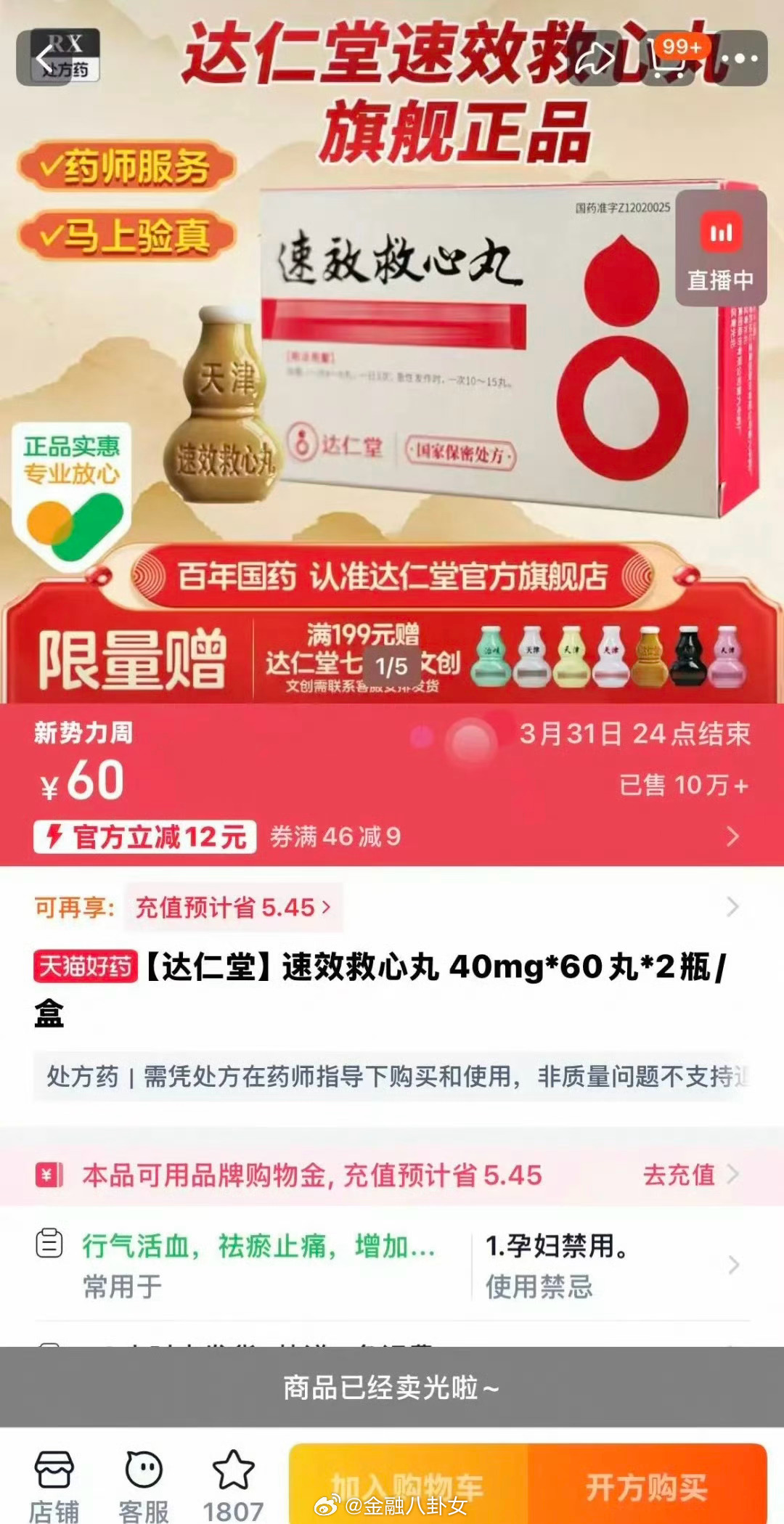 速效救心丸官方线上店铺售罄了,客服回应:预计一周内上架