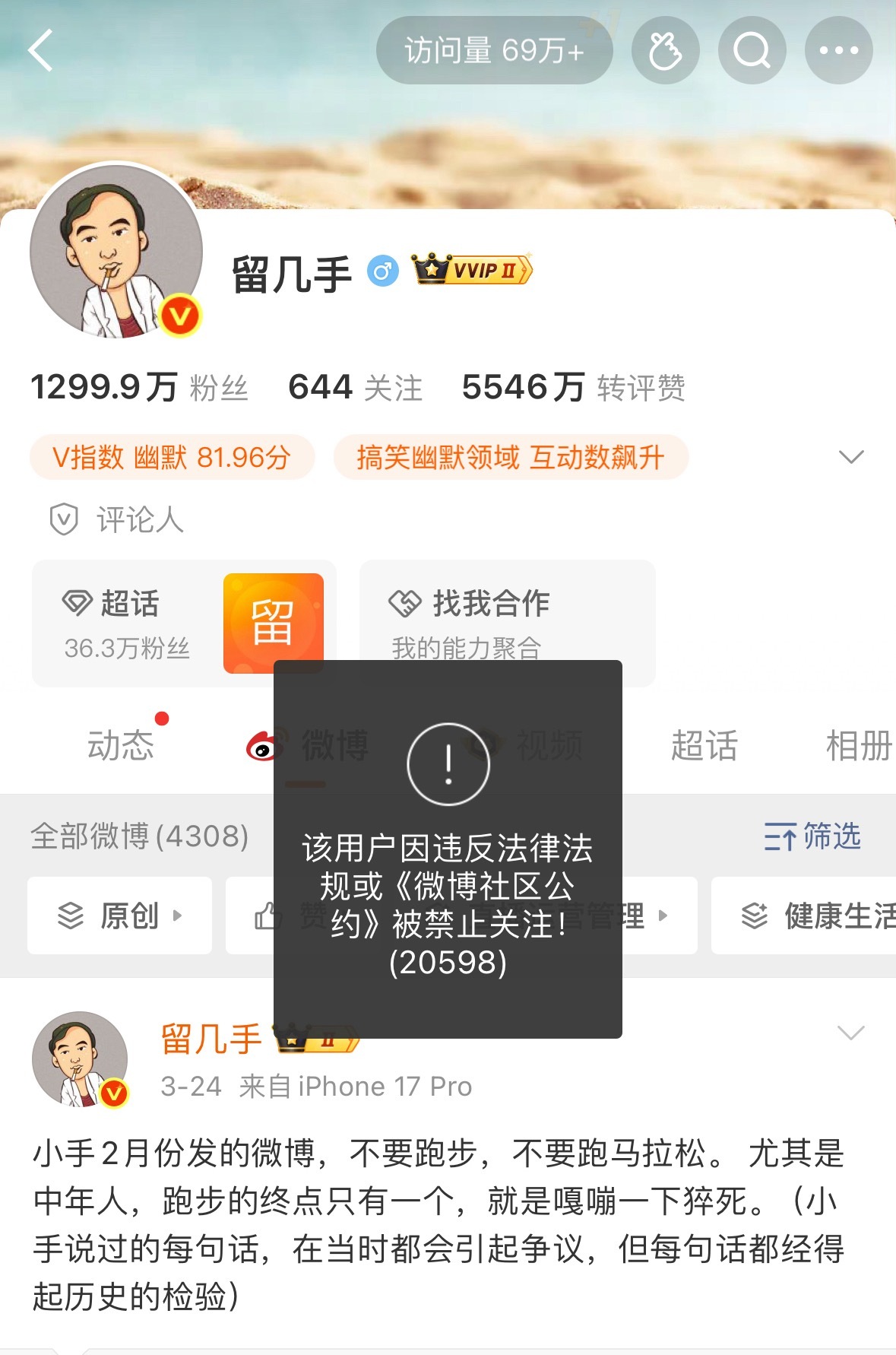 葛晓倩怒怼留几手刚点进去一看,留几手应该是被处理了,已经被禁止关注了。