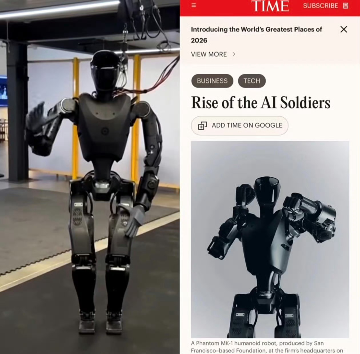 1米8的个头,AI自己判断战场环境,既能侦察还能射击,不怕累不怕辐射生化威胁,2027年还要量产几万台。