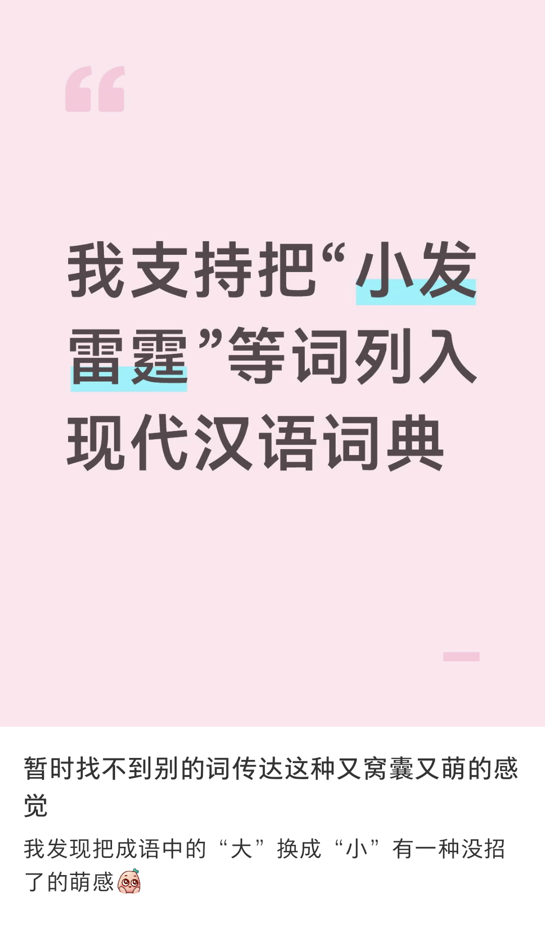 我每天就这样随时随地小发雷霆心怀小志地活着又萌又窝囊的词把成语中的大换成小有种萌感