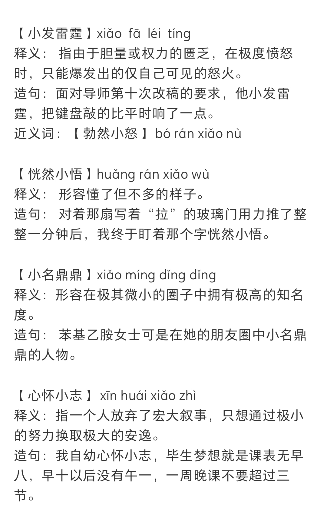 我每天就这样随时随地小发雷霆心怀小志地活着又萌又窝囊的词把成语中的大换成小有种萌