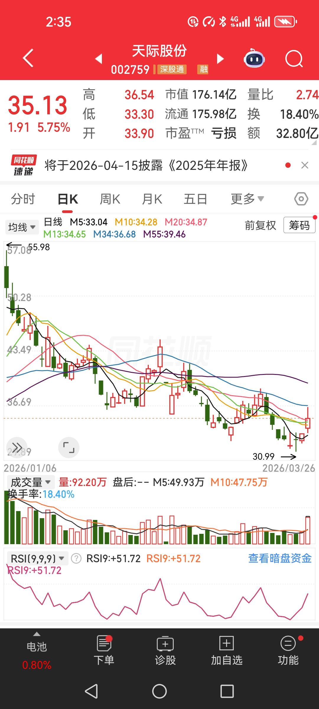 开盘33.90元,我把单子挂在20日线上方——34.9元卖出。想着能卖个相对高点,散户本想着卖出后再接过来,不知道能不能应验。 结果成交后,它直接奔着涨停去了,36.54元。那一瞬间我盯着屏幕,心里咯噔一下:卖飞了,还是飞得老高那种。还没来得及后悔,涨停没封住,又一头栽下来,现在35.1元,放量下跌。 你说我这心情怎么形容?卖完就涨,涨完又跌——要是没卖吧,坐过山车的是我;卖了吧,看着它冲涨停,心里更堵。人就是这么矛盾:没卖的时候怕跌,卖了又怕涨,涨完再跌还觉得自己亏了。说到底,不是钱的事,是心态炸了。 有句话我现在是真信了:别总想卖在最高点,因为你永远不知道涨停和回落哪个先来。 卖飞了别追,跌回来也别庆幸,按自己计划走,比啥都强。 你们有没有这种“卖完就飞、飞完又落”的经历?来评论区说说,让我知道不是我一个人。 高位解套 股票止损技巧