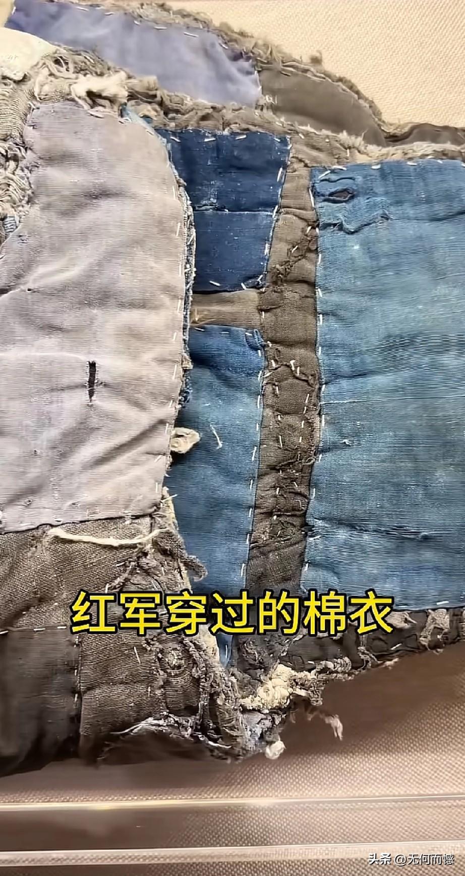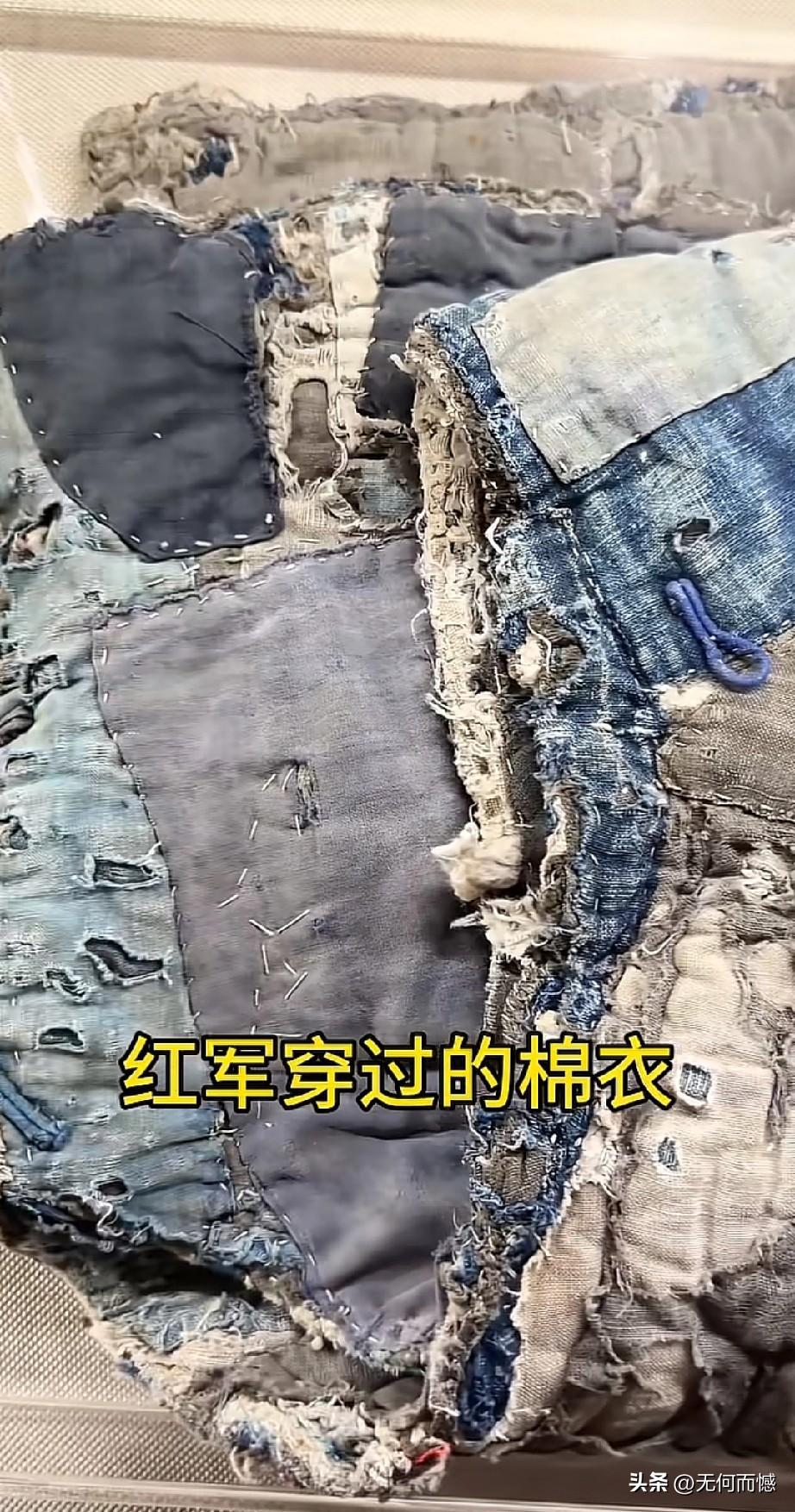 这些破旧不堪的衣服,是红军长征时期战士们穿过的御寒棉衣,现收藏于中国人民革命军事博物馆等红色场馆,是见证革命岁月的珍贵文物。在这件棉衣上,密密麻麻的补丁层层叠叠,蓝的、灰的、旧的布片拼凑在一起,诉说着那段艰苦卓绝的岁月。长征路上,寒风像刀子一样刮过雪山草地,战士们就靠着这件补了又补的单薄棉衣,抵御着零下几十度的酷寒。 它不是一件普通的衣服,是信仰的铠甲。每一针每一线,都缝着红军战士“不怕远征难”的顽强意志;每一块补丁,都藏着战友间相互帮扶的温暖。正是靠着这样的艰苦与坚韧,他们走完了二万五千里长征,用血肉之躯换来了今天的山河无恙。 站在这件棉衣前,我们读懂了“艰苦朴素”的真正含义,更读懂了先辈们用生命守护的初心。这份敬畏与缅怀,永远刻在我们的血脉里。