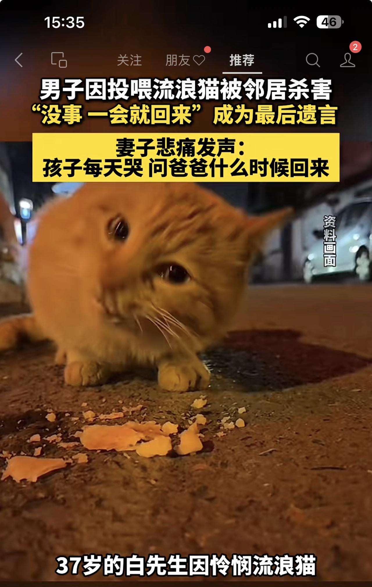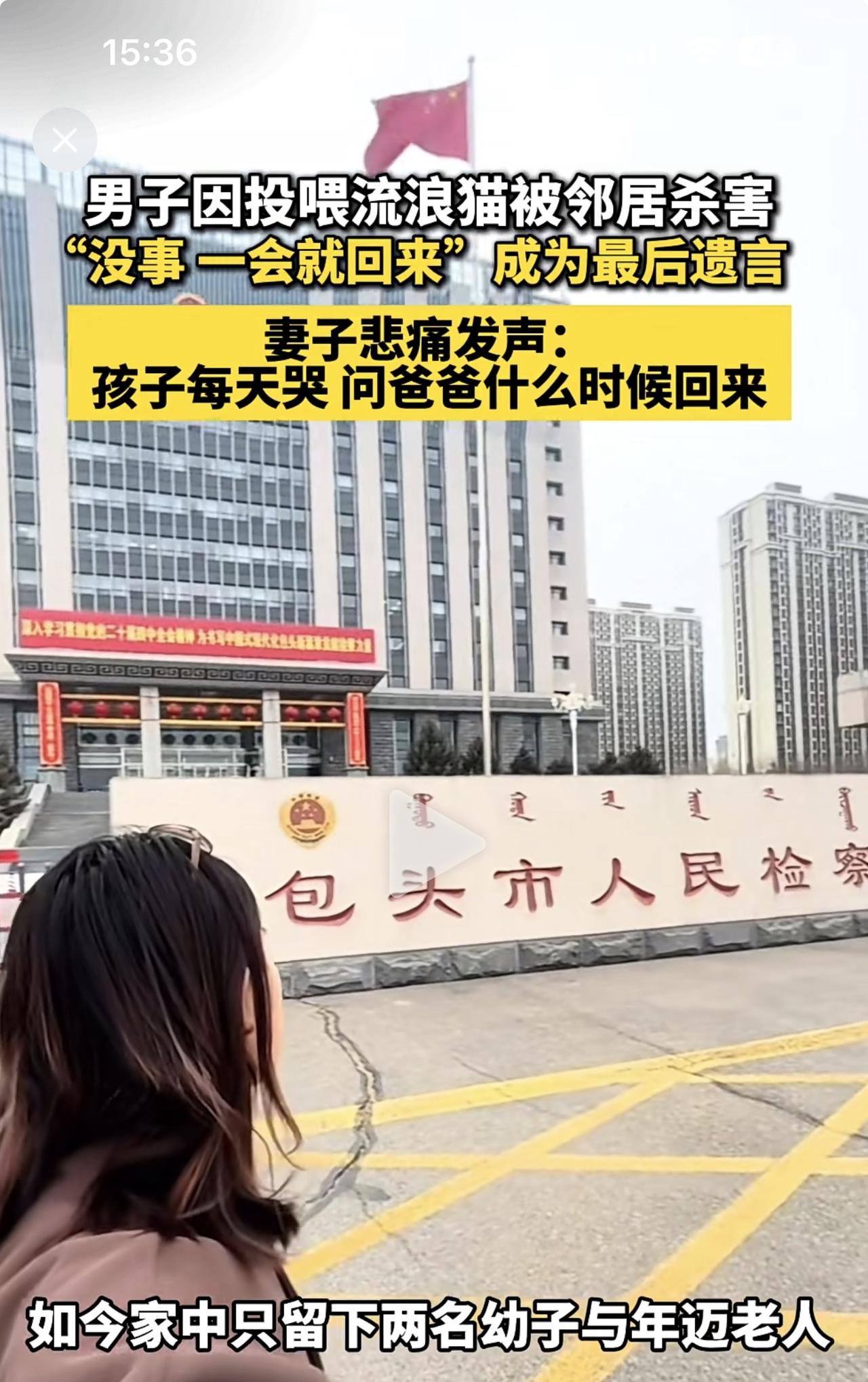 一只流浪猫引发的悲剧!白先生因为心地善良,投喂小区流浪猫,没想到丢了命! 事情原来是这样的。2025年12月11日,内蒙古包头市某小区的白先生回家时,用餐巾纸垫着食物投喂流浪猫,被另一业主发到业主群嘲讽诅咒,双方在从线上吵到线下,在争吵当中,白先生被业主拔刀刺中胸部,心脏破裂死亡! 你说这叫什么事呢!芝麻大点事居然闹出了人命。人啊,千万不要和烂人烂事纠缠不清,他说就让他说吧,一笑而过,置之不理就算了,你和他争论干什么?输赢都是浪费时间和精力!何况发生这样的意外悲剧!教训深刻。