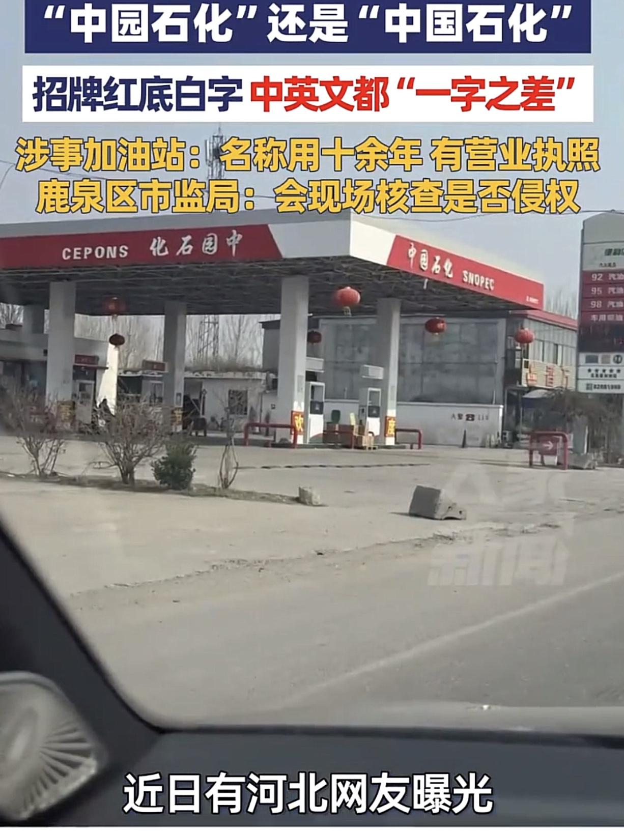 央视曝光:河北石家庄一家经营了10多年,名为“中园石化”加油站疑似“擦边”,与中国石化仅一字之差。 此事被曝光,是一名司机加完油,加油工作人员赠送的一包纸,上车之后在用纸时才看到,纸巾包装上印的是“中园石化”而非中国石化,于是果断把这事反映给了当地的有关部门。“中园石化”果然是艺高胆大,把中国石化的红底白字,英文缩写玩到极致,细节拉满。这个招牌,你不仔细辨认,真的很难看出来。能靠“一字之差”蒙混多年,还拿正规资质当挡箭牌,简直是行业“高仿天花板”,让人又好气又好笑 。 (来源:央视新闻) 不明白,既然当时审批过了,也经营了10多年之久,要怪就怪工商局为啥子要让这些擦边加油站能够挂牌营业。防止这种“混水摸鱼”的加油站,唯一的办法,办一张中国石化的加油卡,凡是用不了这个卡的油站,都是假的。