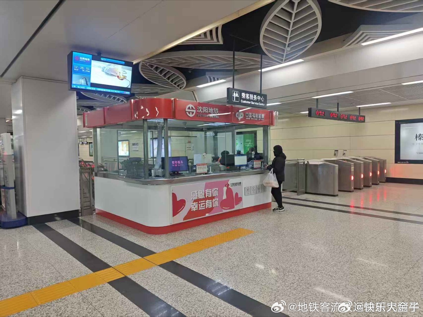 沈阳地铁今年春运开始就在人多的大站设福利彩票销售点。在铁西广场站看到彩票小棚搭着