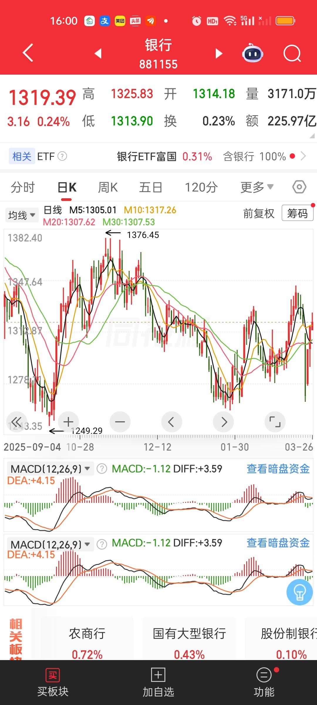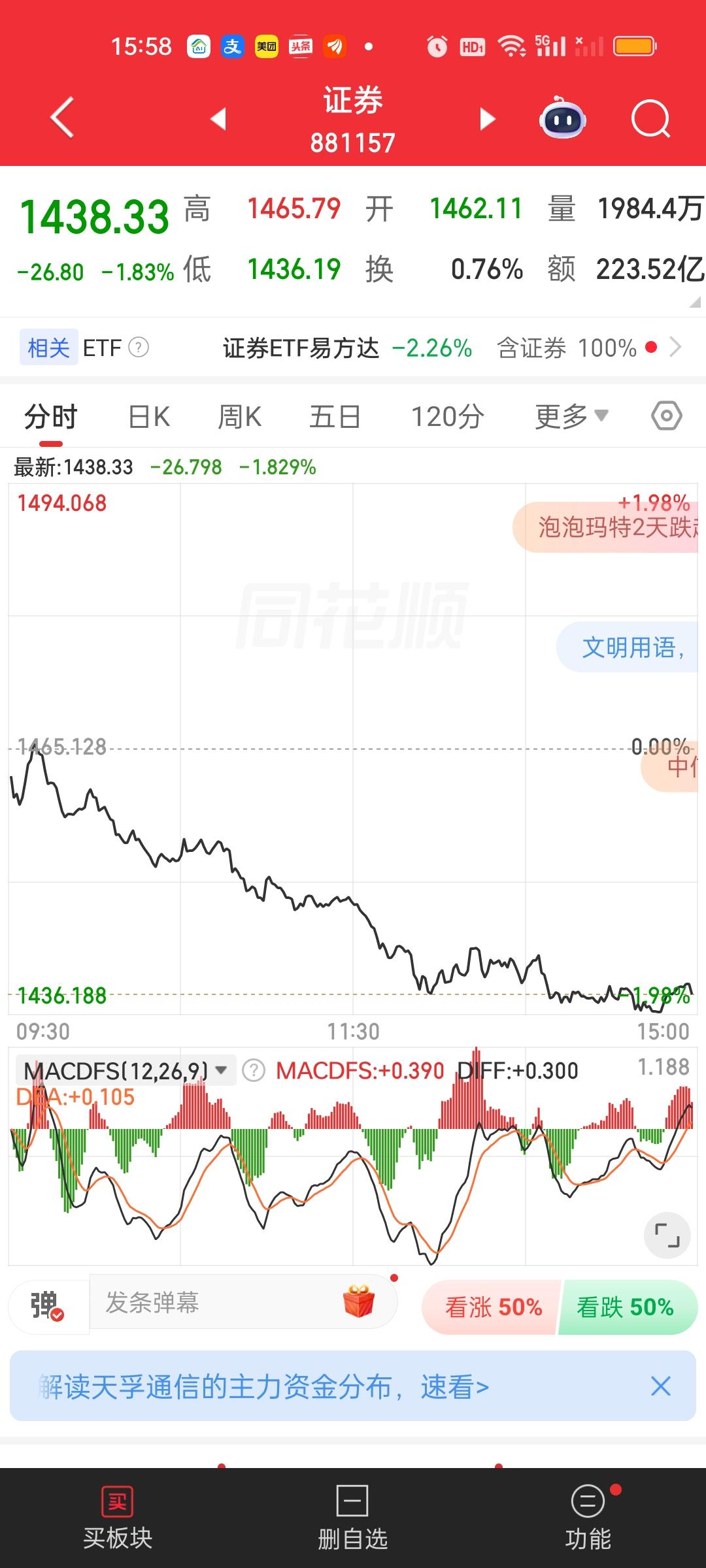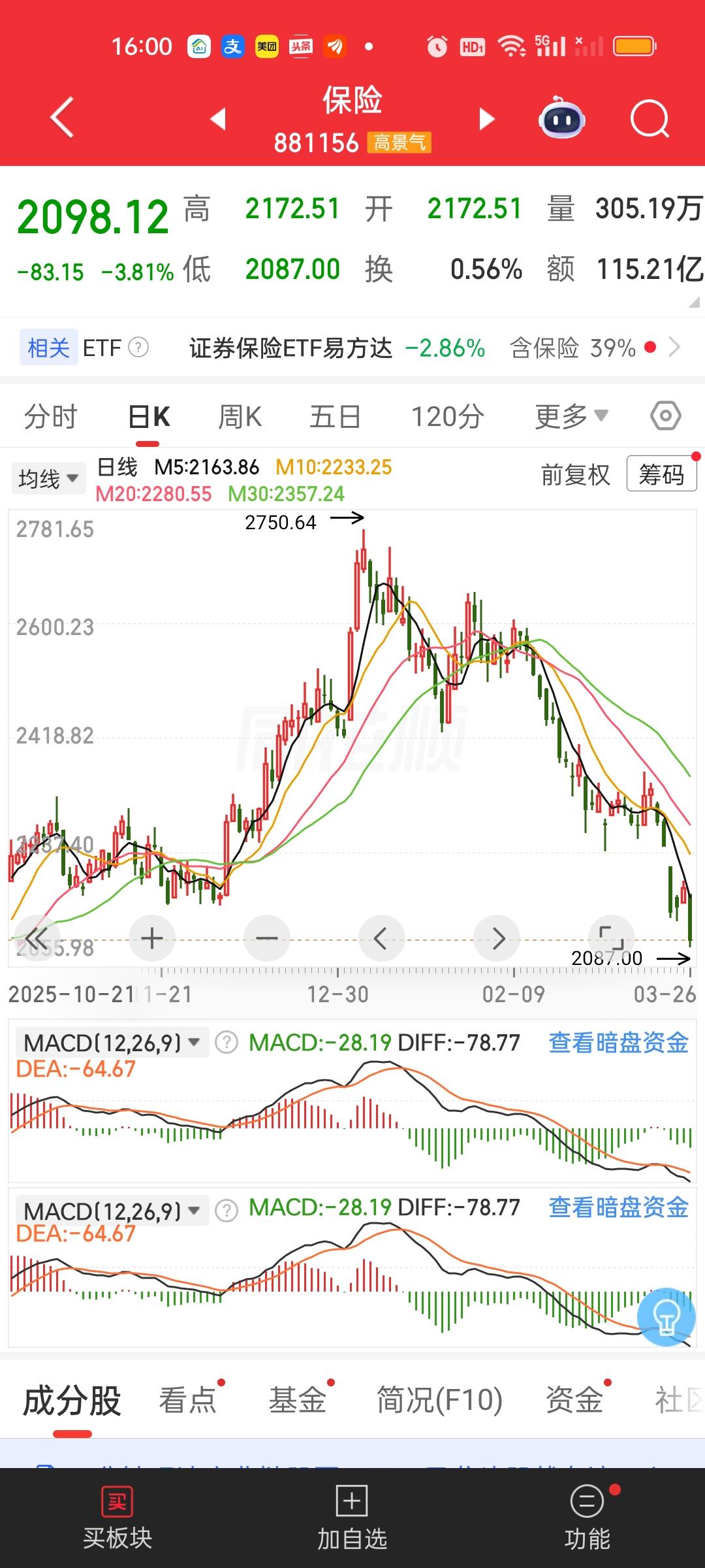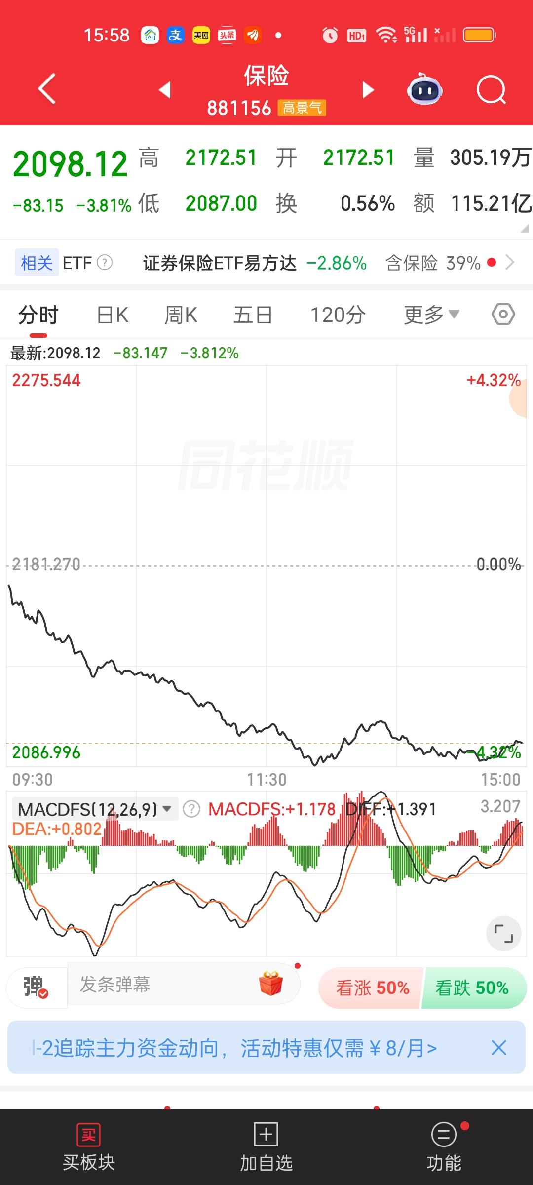 我们可以很清楚的看到,今天除了银行,证券和保险还是没有出来护盘。这说明上面对今天大盘的走势是很满意的。保险今天大跌3.81%,已经创出新低,破了周一的低点。证券虽然没破周一低点,但也只差不到19个点了。反而是银行周一收出巨阴以后,连续3天收阳。昨天就已经把周一的阴线完全吃掉了。