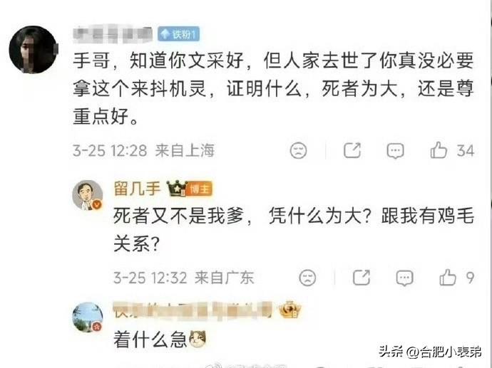 留几手回应张雪峰去世大V“留几手”微博被禁止关注,流量再大也不能任性。身为公众人