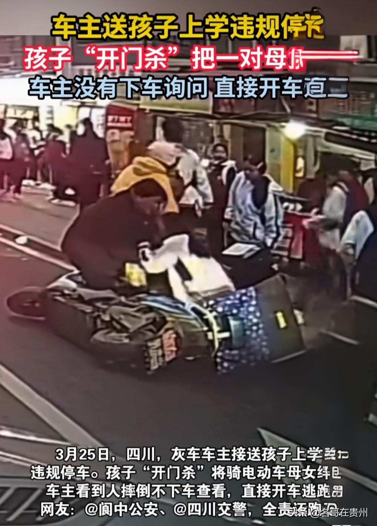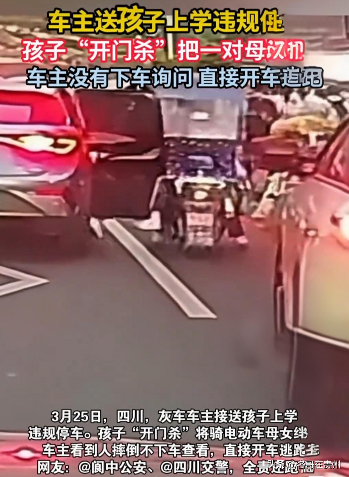 温州校门口“开门杀”!撞倒母女后,家长竟一脚油门跑了? 送孩子上学,本应该是为人父母最温柔的时刻,但有些人硬是把这趟“暖心路”走成了“绝情路”。 今天早上在温州,这一幕真是把人肺都气炸了。一位家长开车送孩子上学,在学校门口人来人往的路上,随手就把车违停在路边。结果坐在后排的孩子一开门,直接上演了“开门杀”——一对骑着电动车的母女连人带车被撞翻在地,妈妈本能地护住孩子,两人重重摔在地上,看着都疼。 按常理说,撞了人,哪怕不是故意的,第一时间是不是该下车看看?扶一把,道个歉,该送医送医,这才是正常人干的事吧? 但这位家长的操作,直接刷新了大家对“自私”的认知。他不仅没有下车,甚至连车窗都没摇下来看一眼,仿佛外面那两声惨叫跟他没关系一样。车里的孩子还探出头来,一脸懵地看着倒在地上的母女,而这位家长呢?一脚油门,直接开着车逃离了现场,只留下尾气和倒在地上无助哭泣的母女俩。 说实话,看完监控视频,我真的替这位家长感到悲哀,更替他车里的孩子感到悲哀。 咱们来捋一捋这件事,这根本不是简单的“不小心”,这是妥妥的“三宗罪”。第一,学校门口早高峰本就拥堵,你违规停车,安全隐患早就埋下了;第二,作为司机,停车后不观察后方来车就让孩子开门,这是对他人生命最基本的漠视;第三,也是让人最愤怒的——肇事逃逸!不管你是心存侥幸,还是害怕担责,这一脚油门,把一件普通的交通事故,直接踩成了违法甚至犯罪的行为。 校门口的路,每天早上都有成千上万的孩子和家长在走。作为送学的家长,自己也是为人父母,难道就因为自己的孩子没受伤,就可以对别人的孩子、别人的妻子视而不见吗?这种“事不关己高高挂起”的冷漠,比“开门杀”本身更让人心寒。 被撞的母女俩,原本也是开开心心去上学,结果却遭此横祸。如果当时不是护住了孩子,后果不堪设想。而这位逃逸的家长,可能现在还觉得“反正没看到死人,跑了就没事了”。但我想说,现在的街头到处都是监控,你能跑到哪里去?逃避解决不了问题,只会让赔偿变成刑罚,让原本的过失变成蓄意的恶行。 大家都来说说,遇到这种“开门杀”还逃逸的事,你觉得该不该重罚?如果你是那个被撞倒的母亲,你希望看到肇事者什么样的态度? 作者申明:此文章内容基于温州本地媒体及交通广播报道的“校门口开门杀肇事逃逸”真实事件整理创作,旨在呼吁交通安全意识,具体案件细节以官方通报为准。