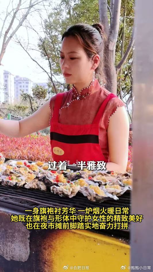 合肥一宝妈惊艳夜市合肥90后宝妈穿旗袍卖生蚝 夜市的烟火气遇上旗袍的雅致,成就了