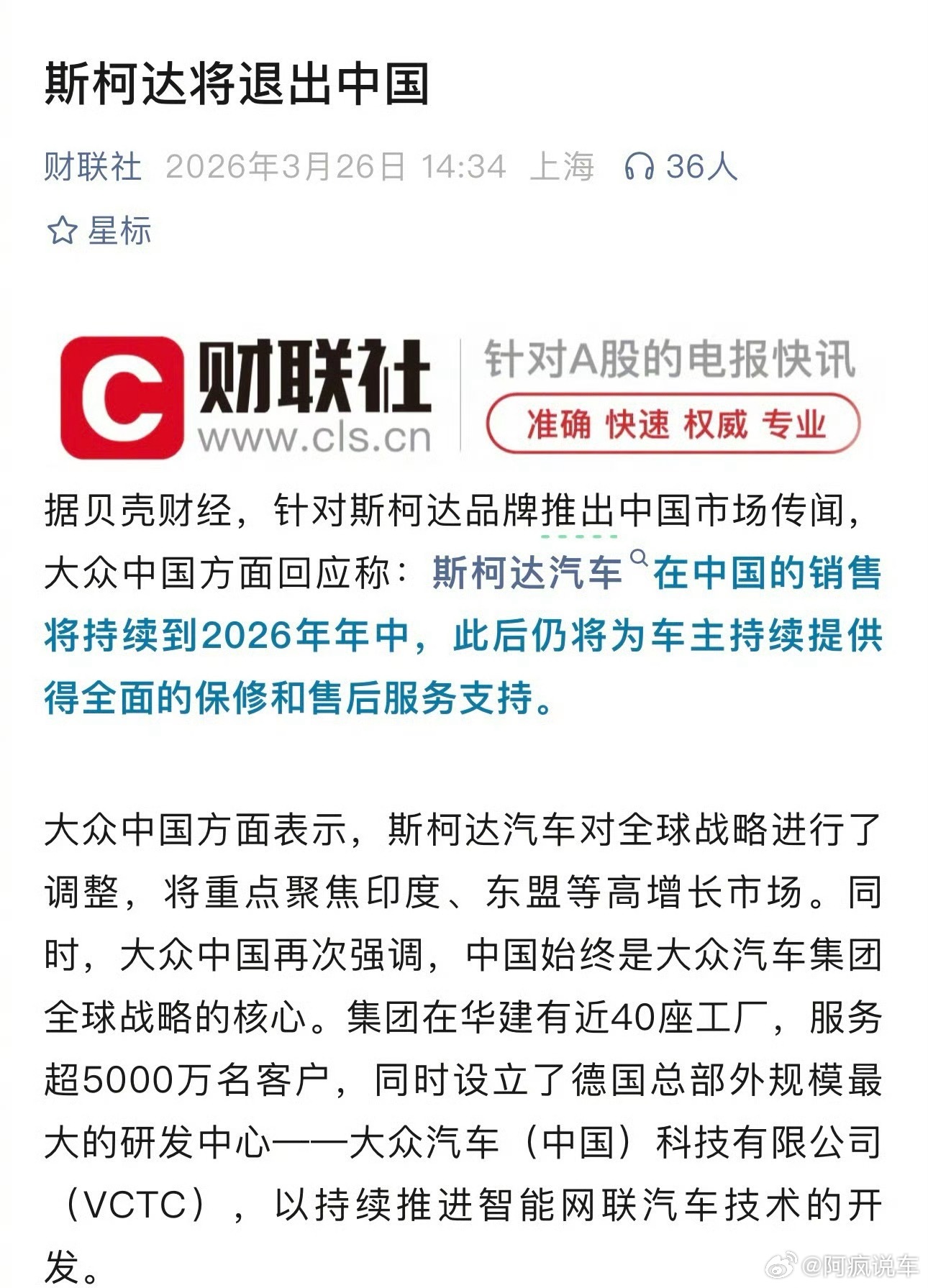 斯柯达汽车在中国的销售,将持续到2026年年中,不过大家不用担心,后续的保修和售后品牌方还会提供相应的支持。