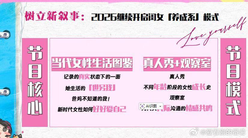 《我家那闺女2026》项目招商信息【节目定位】女性纪实励志观察类真人秀【播出平台】芒果TV【主创团队】王鹏飞创新小组【真人秀闺女阵容】拟邀王玉雯、陈妍希、易梦玲、刘雨昕、张艺凡、孙珍妮、邹元清、张雅钦、孙乐言、张小碗、卞瑞英等【观察室阵容】拟邀齐思钧、小鹿、刘思远、李松蔚、往季闺女+小子、当期闺女的家长【录播时间】拟定5月中旬录制,7月播出