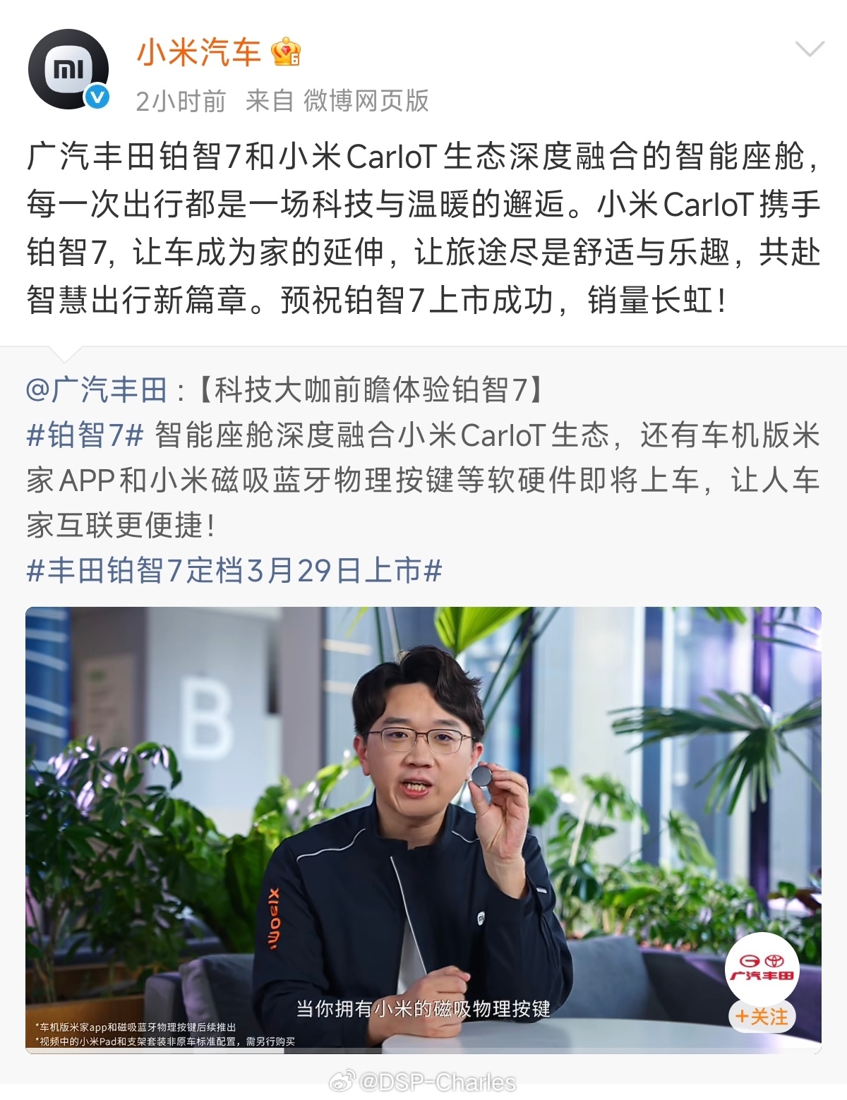 小米负责人体验铂智7小爱同学小米负责人试驾丰田铂智7