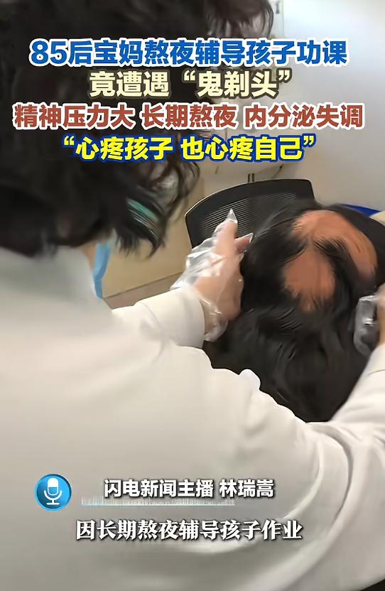 近日,江苏苏州,一女子辅导孩子作业,因为孩子在写得慢,便经常到深夜才结束,因为长期熬夜,内分泌失调,加上心情焦虑,竟开始大把脱发,最后发现头顶出现3块斑秃,并且慢慢扩大!网友:还是要调整心态! 不知道有的家长有没有过这种体会,辅导孩子写作业,真的比家长自己上班还累。 最近就有这么一位女子,因为天天陪着孩子熬夜写作业,把自己的身体熬出了问题。 这位女子每天下班回家,卸下一天的疲惫,来不及歇口气,就得马不停蹄地陪孩子写作业。 看着孩子坐在书桌前,手里握着笔,对着一道简单的题目发呆,几分钟了一个字都不写,她就忍不住上火。 有时候控制不住会提高音量,甚至吼孩子几句,可吼完之后,又忍不住后悔。 可下一次,还是会控制不住情绪。 她也试过各种方法,想让孩子写作业快一点,比如给孩子规定时间,告诉孩子在规定时间内写完就能休息。 可孩子要么就是赶时间写得乱七八糟,要么就是根本完不成,依旧要熬夜。 她也试过拆分作业,把一天的作业分成几个小任务,让孩子一个一个完成。 可孩子还是会在每个小任务上磨磨蹭蹭,写两个字就玩一会儿,要么喝水,要么上厕所,要么就说自己累了,总之就是不能专心写作业。 到最后,不管她用什么方法,孩子写作业慢的问题,始终没有改善,熬夜也就成了家常便饭。 一开始,她觉得自己年轻,熬熬夜没什么大不了,顶多就是第二天早上起来有点困,喝杯咖啡就能缓解。 可渐渐地,她发现自己的睡眠越来越差。 有时候陪着孩子熬到深夜,等孩子睡了,自己却毫无睡意,躺在床上翻来覆去,脑子里不停的想这想那的。 想着孩子今天又磨磨蹭蹭,想着明天还要早起上班,还要辅导孩子作业。 越想越焦虑,越焦虑越睡不着,有时候甚至要到凌晨两三点才能睡着。 可睡不了几个小时,又要起床,一天下来,整个人都昏昏沉沉,没一点精神。 她还发现自己的情绪变得越来越差,一点小事就能让她烦躁不已。 有时候家里人多说一句话,她就会忍不住发脾气,发完脾气之后,又陷入深深的自责和焦虑中。 她也知道自己不对劲,可有时候就是怎么都控制不住自己的情绪。 真正让她重视起来的,是脱发的问题。 起初她只是发现自己梳头的时候,梳子上会缠上一些头发,洗头的时候,也会掉一些。 她以为是正常的脱发,没太放在心上,觉得可能是最近太累了,休息休息就好了。 可慢慢的,脱发变得越来越严重,看着自己越来越稀疏的头发,心里又急又怕。 赶紧买了各种防脱洗发水、护发素,甚至还买了一些补气血的保健品,每天坚持用,坚持吃。 可脱发的情况,不仅没有好转,反而越来越严重。 一天,她洗完头,吹干头发的时候,无意间用手摸了摸头顶,突然摸到了一块光秃秃的地方——光滑得没有一根头发。 当时她就吓懵了,赶紧拿起镜子仔细看,这一看,才发现她的头顶,竟然出现了斑秃。 这时候,她再也不敢拖延了,赶紧抽时间去了医院。 医生仔细检查了她的头皮,又询问了她的日常作息和情绪状态,听完她的描述,医生给出了诊断结果。 她的斑秃,主要是长期熬夜、内分泌失调,加上长期心情焦虑导致的。 女性本身内分泌就比较敏感,长期熬夜和焦虑,很容易导致激素分泌失衡,进而影响毛囊的健康,导致脱发,严重的就会出现斑秃。 正常情况下,人体的激素分泌有固定的节律,尤其是皮质醇,白天分泌较高,晚上逐渐下降,而长期熬夜,会打乱这种节律,导致皮质醇水平异常升高,进而引发一系列问题。 后来,她把自己的经历分享到了网上,没想到一下子引发了无数网友的共鸣。 有网友留言说:“辅导孩子写作业,真的能把人熬疯,我也是天天熬夜陪孩子,现在头发掉得厉害,看完你的经历,真的不敢再硬熬了。” 还有网友说:“孩子写作业慢,急也没用,还是要调整心态,身体健康才是最重要的。” (信息来源:闪电新闻《近日,江苏苏州一位85后宝妈肖女士因长期熬夜辅导孩子作业,导致严重斑秃。医生表示,斑秃俗称“鬼剃头”,多与精神压力大、长期熬夜、内分泌失调等因素有关。》)