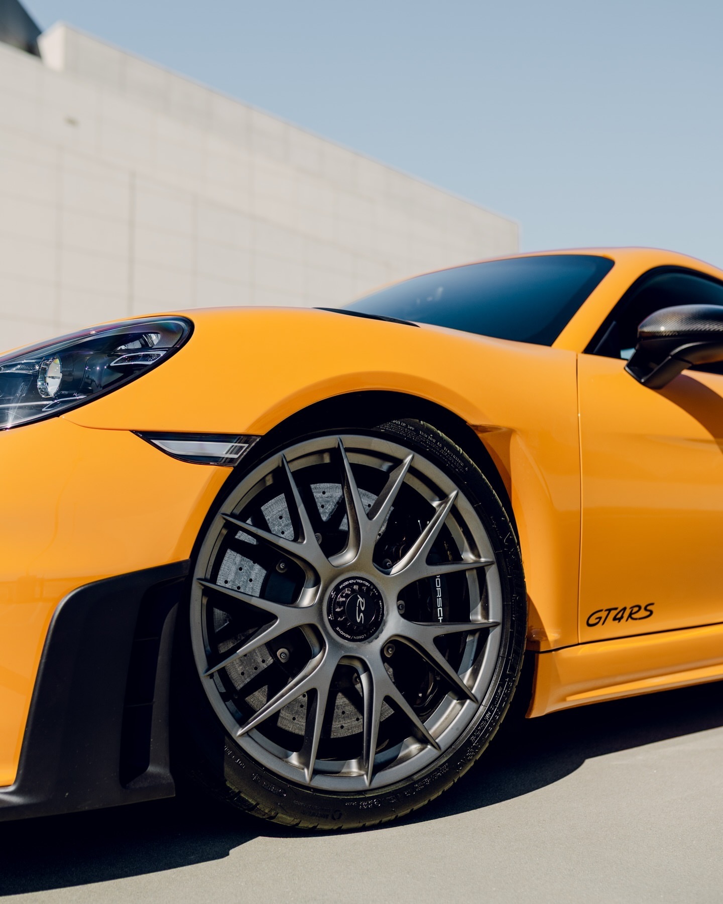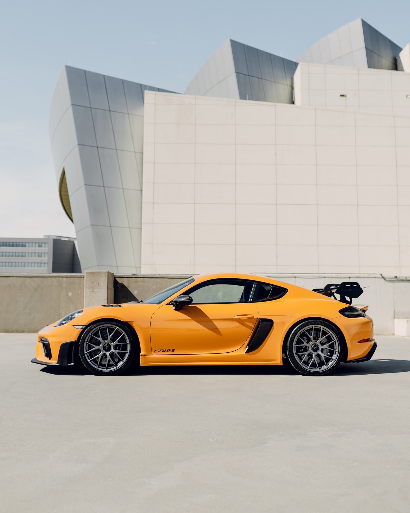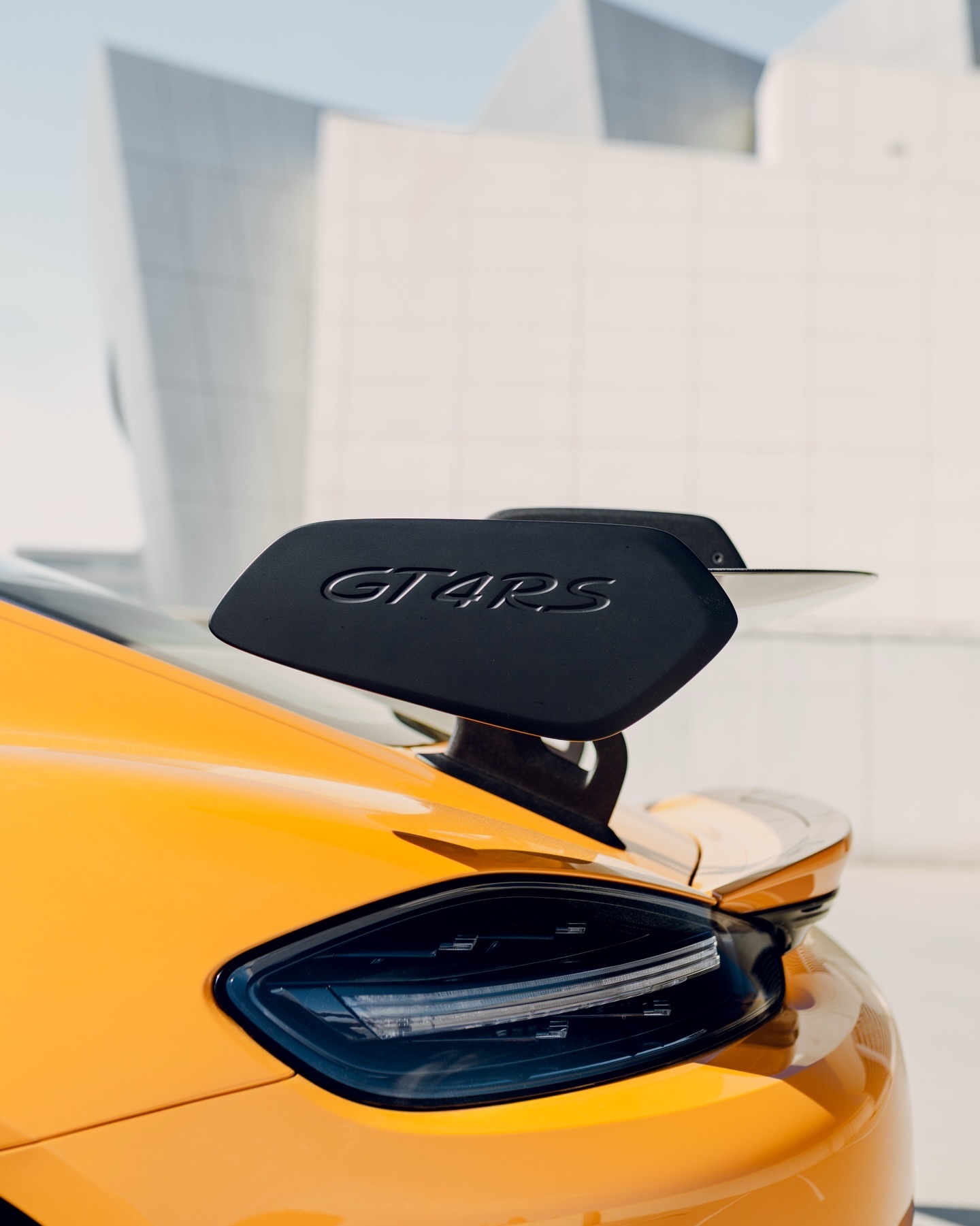 博纳黄 PTS 涂装,这辆 2025 Sonderwunsch 保时捷 718 Cayman GT4RS 上看起来绝对惊艳。