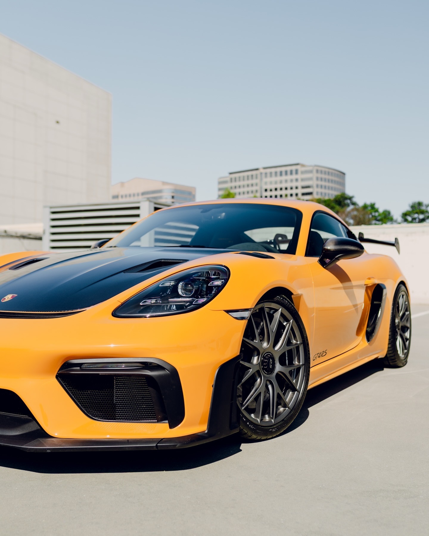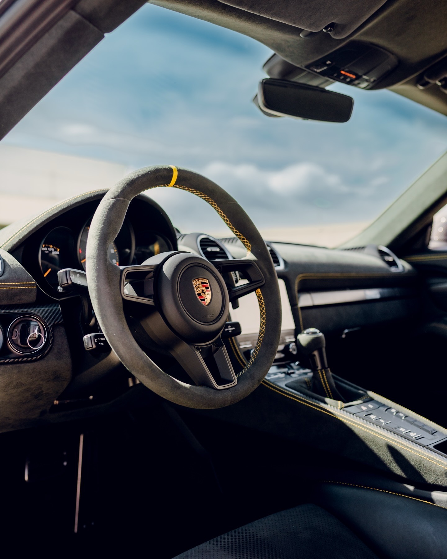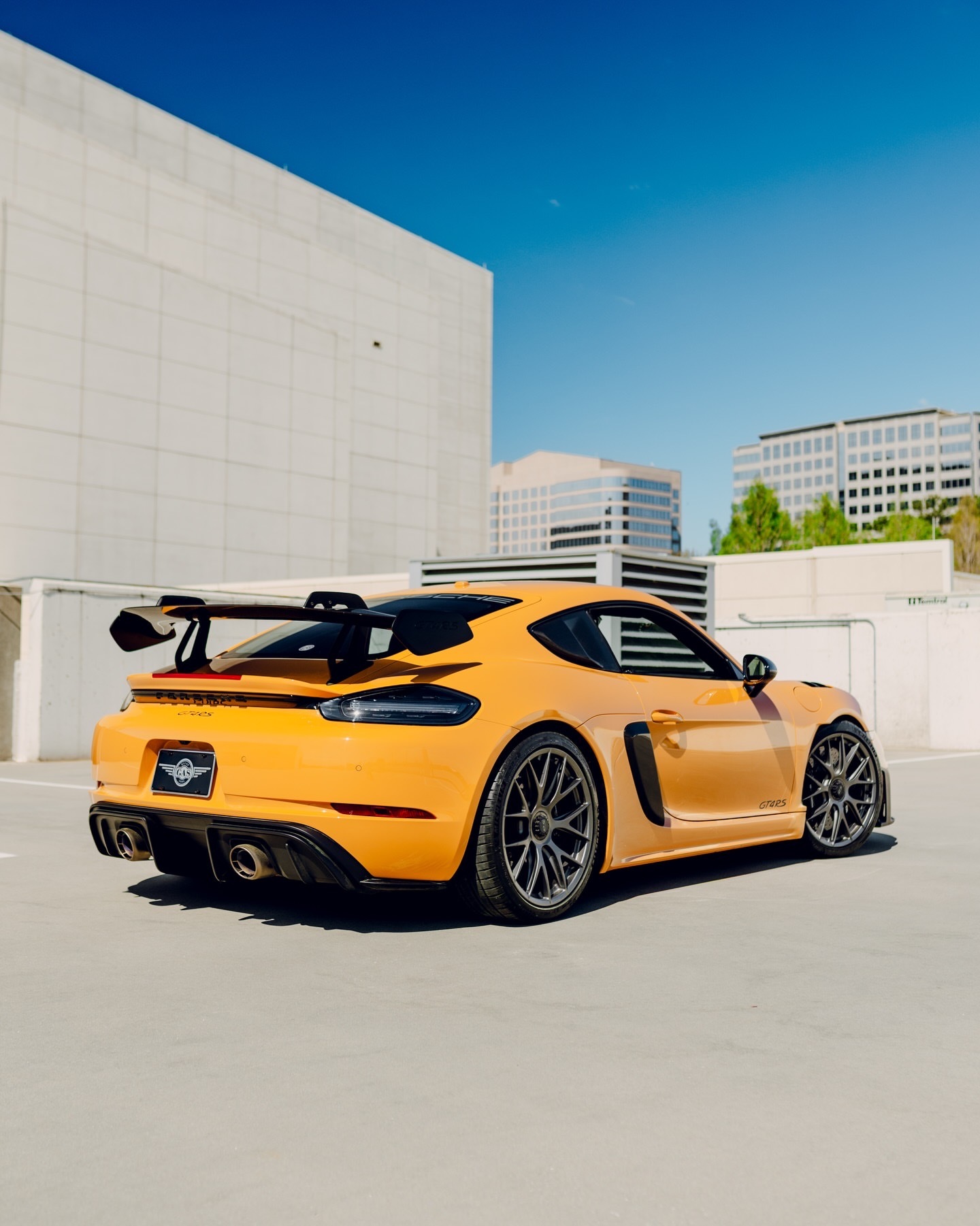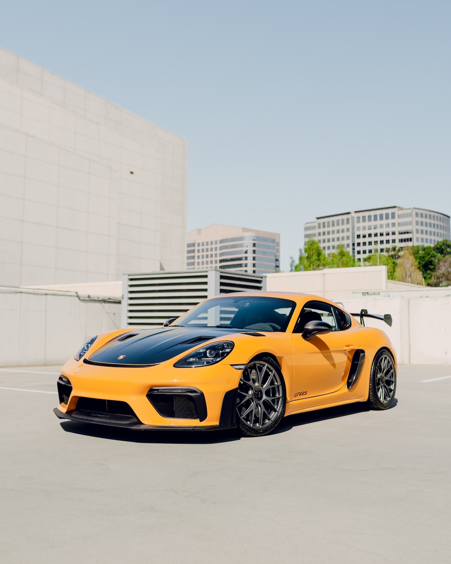 博纳黄 PTS 涂装,这辆 2025 Sonderwunsch 保时捷 718 Cayman GT4RS 上看起来绝对惊艳。