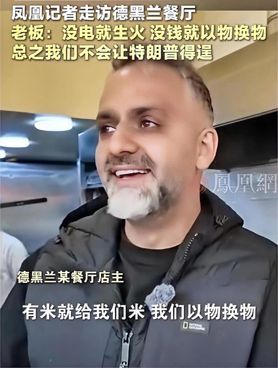 德黑兰餐厅老板这话说得太提气了! 没电就生火,没钱就以物换物,一句“绝不会让特朗普得逞”,把不屈的骨气喊得明明白白。 西方制裁想掐死普通人的日子?偏不!灶台里的火、餐桌上的饭,就是最硬的反抗。 你断我电、封我钱,我就用最朴素的方式活下去,把日子过成打在霸权脸上的耳光。 这哪里是一家餐厅的倔强?是整个民族在制裁下的韧性——越是被围堵,越要攥紧拳头过日子。 强权压不垮想好好生活的人,这种“不服输”,才是最让霸权害怕的武器。德黑兰日常