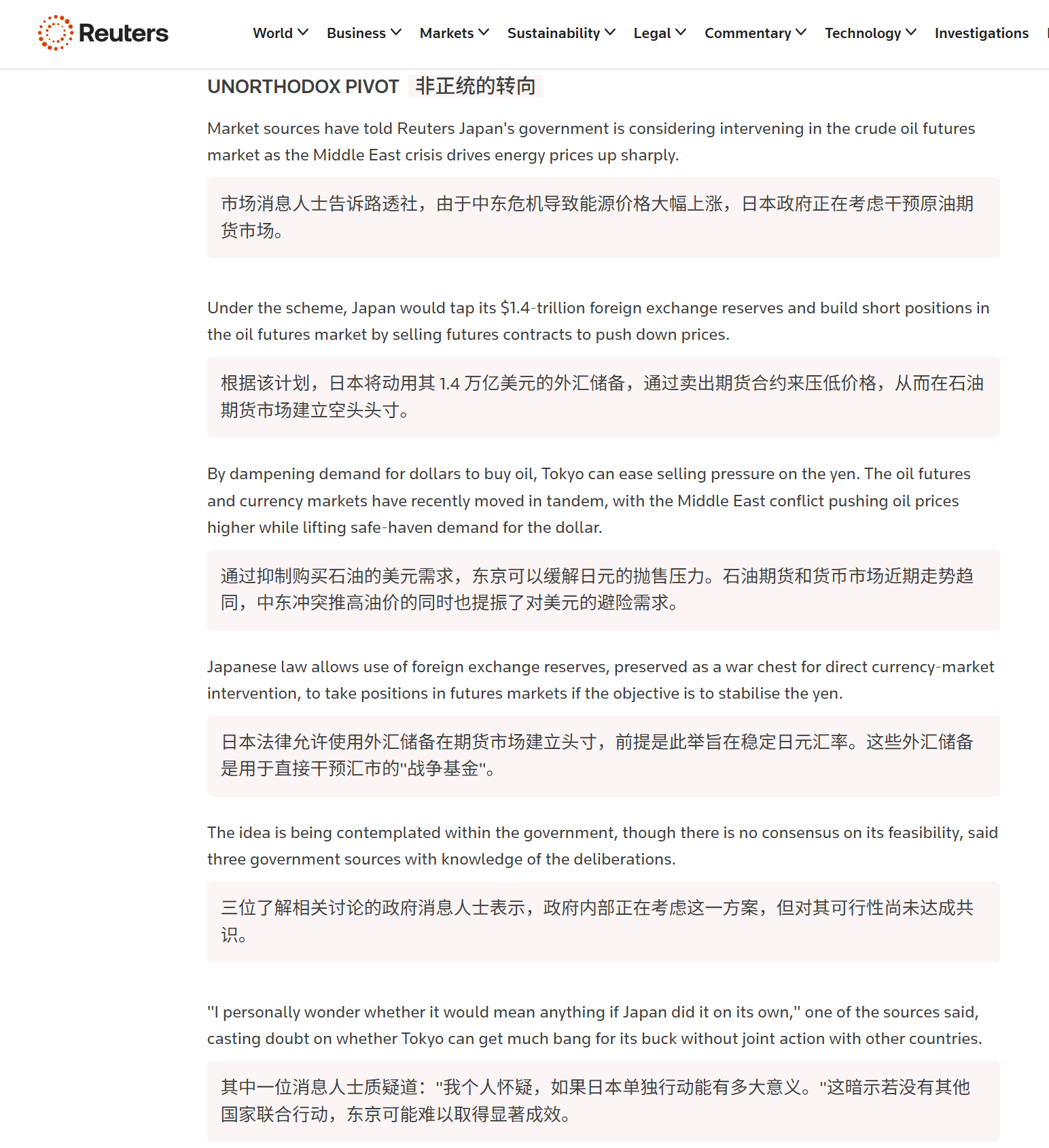 🔻面对石油短缺,日本可能的解法是:“动用外汇储备,今天我要当石油期货大空头!”