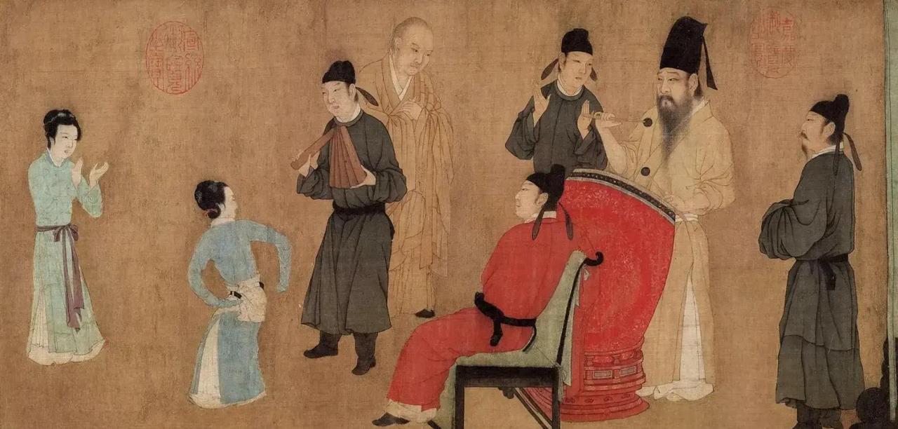 南唐金陵,一幅夜宴画卷竟暴露大臣韩熙载的自污把戏,背后间谍目光层层监视? 这幅《韩熙载夜宴图》表面记录歌舞狂欢,实则顺序大乱。韩熙载衣着反复变化,从黑袍到黄衫再回黑袍,南京艺术学院2023年研究显示,这种断裂暗示原画被后人剪辑过。原本紧接观舞的送别场景,韩手持鼓槌本是为舞伎王屋山伴奏,可现在却乱了节奏。这样的调整,抹去了更多逾矩场面,夜宴高潮怕是远超雅致清吹,转为放肆狂欢。画中干净有序,反倒戳破了被删的痕迹,暴露出一场政治表演的冰山一角。 再看德明和尚,出家人在宴席上本就扎眼。文献载韩曾向他吐露心声,忧中原虎视江南。画面中,他拱手指向韩熙载,目光警觉锁定主人,而非舞者。不同于宾客的闲赏,这眼神像在监视。结合南唐史料,德明或兼李煜眼线,与画家顾闳中双重潜伏。这样的身份悖论,凸显夜宴成多方窥探的剧场,韩的放荡不过是避祸的伪装。 床榻和屏风更藏玄机。两处被褥隆起凌乱,五月或十月不冷时节本无需厚盖。屏风半掩身影,侍女姿态暧昧,指向被遮的私密活动。韩对姬妾纵容,画中转为隐喻。屏风分割空间,却又暗示连接,藏露之间留解密线索。据2022年故宫博物院修复报告,这些道具细节强化了隐私叙事,夜宴不止听乐观舞。 服饰色彩也泄权力秘密。宾客深色长袍,乐伎用间色,韩多正色却避紫绯。状元粲独穿红袍,违官服规范。五代舆服志规定严苛,韩的白衫似凶服预言,暗示政治边缘化。整体这画卷编码层层,顾闳中呈李煜情报,却埋真相对抗。韩的表演映照末世君臣心机,艺术成权力迷宫的镜像。