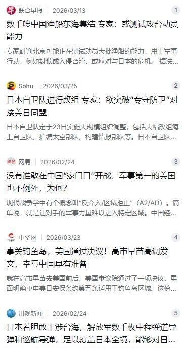 中日对峙已剑拔弩张,开战绝非空谈,但有件事中国必须正视:真打起来,想短时间彻底结束战争几乎不现实。 麻烦看官老爷们右上角点击一下“关注”,既方便您进行讨论和分享,又能给您带来更多优质的内容,感谢您的支持! 现在的东海局势,说实话,已经到了一个非常微妙且紧张的地步。 这仗如果真打起来,核心不会是步兵冲岛那种老模式,而是信息化体系下的海空大比拼,比的是谁先发现对方、谁的导弹打得更准、谁的电子战能把对手搞瞎。日本这些年动作不小,从去年到今年,借着所谓外部威胁的名头,把专守防卫那层纸基本捅破了。 就在2026年3月9日凌晨,日本防卫省把改进型12式反舰导弹的发射装置悄悄运到了熊本县的健军驻屯地,原计划晚一点部署,结果提前到3月底正式落地。这款导弹射程拉到1000公里以上,从九州位置出发,能覆盖东海大片区域,还能打到中国沿海一些纵深地带。 日本防卫省在2026财年拿出了9700亿日元搞远程导弹项目,重点就是提升所谓对敌基地攻击能力。背后有美国支持,从反导系统到情报共享,美军在第一岛链的布局给日本提供了实打实的帮手。 咱们这边这些年区域拒止能力建得也挺扎实,数千枚中程导弹能覆盖日本全境,包括横须贺和佐世保的美军基地都在打击范围内。太空侦察体系基本成型,日媒自己提到,中国遥感卫星平均每10分钟就有一颗掠过日本上空,横须贺基地一天能被光顾60次左右,自卫队和美军的动向基本处在实时监控下。 不过问题也摆在这儿。打仗不是过家家,想靠一两场战役就彻底打垮日本、速战速决,这事不太现实。 日本工业底子还在,精密制造能力世界一流,虽然资源缺,但进入战时状态,军工产能恢复起来会比较快。咱们工业规模大、体系全,这点没话说,可战争打的是持续消耗,一旦开打,海上运输线会不会被掐、能源供给能不能稳住、装备损耗能不能及时补上,这些都是实打实的坎。 更麻烦的是美国。日本是美国的铁杆盟友,中日要是真开打,美国不会干看着。 2026年1月,美日防长会谈就说要强化西南诸岛的联合存在,还扩大演习规模。美国到时候不用直接派兵上一线,光在情报、后勤、电子干扰上给日本帮忙,就够喝一壶的。 这种外溢风险不小,战局可能把整个西太平洋都卷进来。从长远看,这仗能不能扛住,拼的就是两国工业动员能力和后勤韧性。 中国有强大的制造业基础和战略纵深,这是底气;日本有美国技术支援和高精尖生产能力。双方都清楚,一旦开打就是一场持久消耗战,谁先撑不住谁就输。 现在的局面就是这样:不打,大家都在磨刀;真打,谁也别想轻松脱身。东海摩擦风险高,但双方也在通过现有机制管控分歧。 此前熊本县知事木村敬和熊本市市长大西一史公开表达不满,说防卫省事先不通报,地方信任感下降。当地居民也有聚集表达担忧。 防卫省后来安排了展示会,让官员看设备,但没搞全面说明会。东海海域双方继续常态化巡航和监视,外交渠道保持沟通,避免事态失控。 西南诸岛附近联合演习还在进行,舰艇编队调整阵型,导弹相关准备工作推进。双方工业和后勤准备继续,区域稳定靠各方克制和对话来维持。
