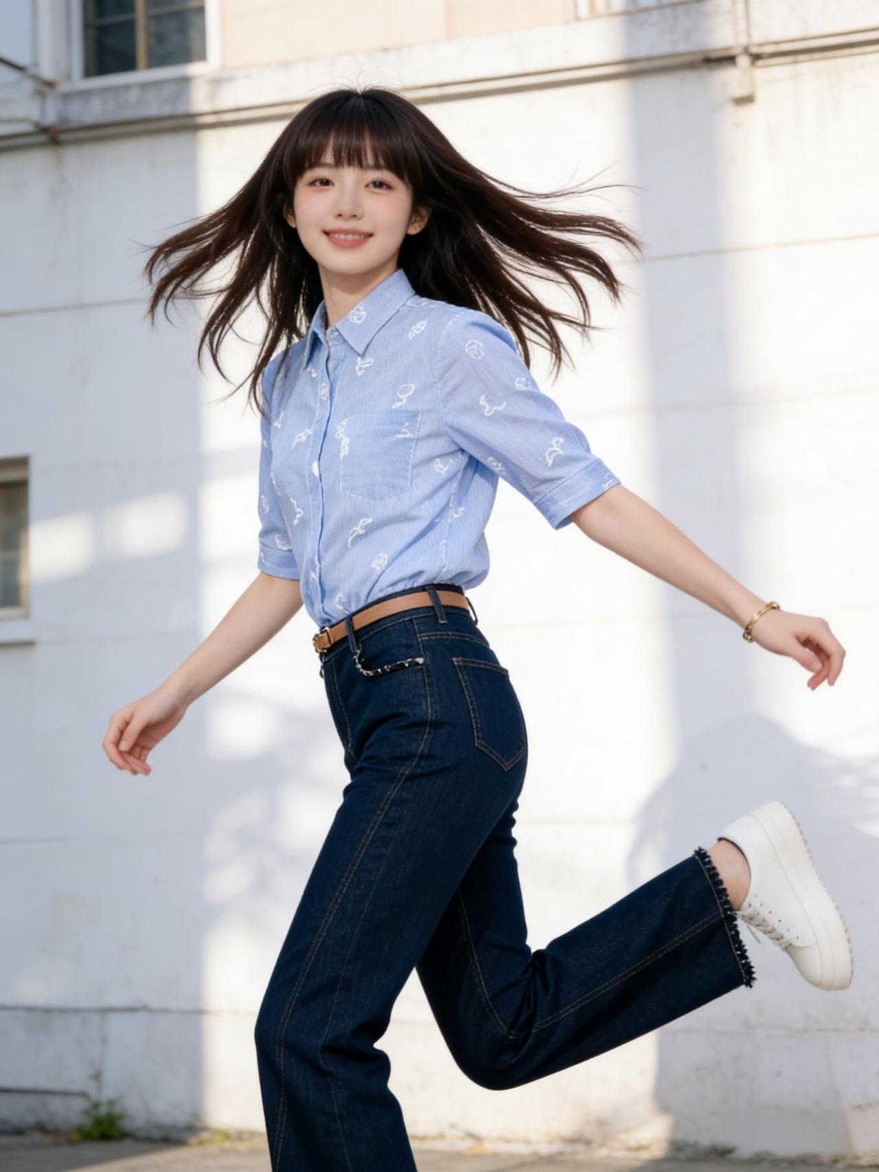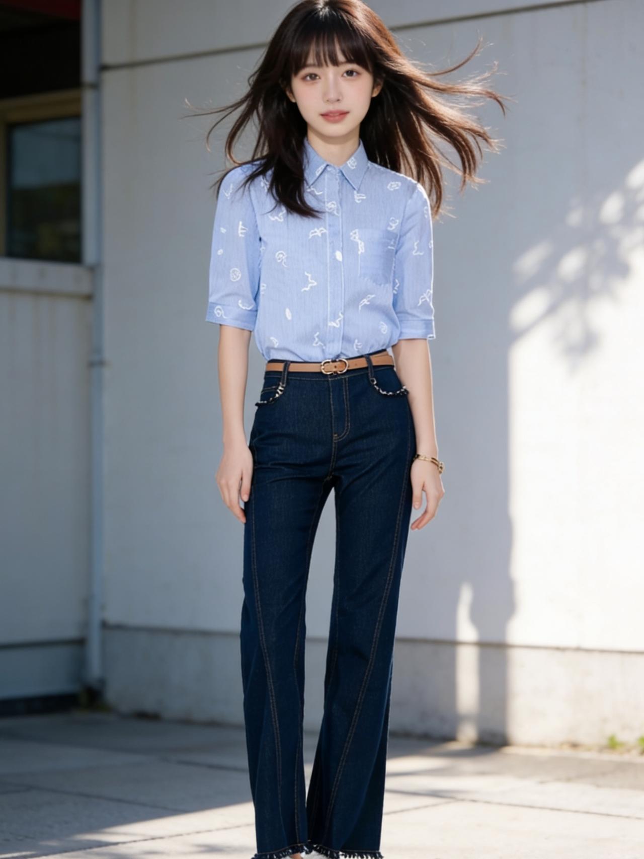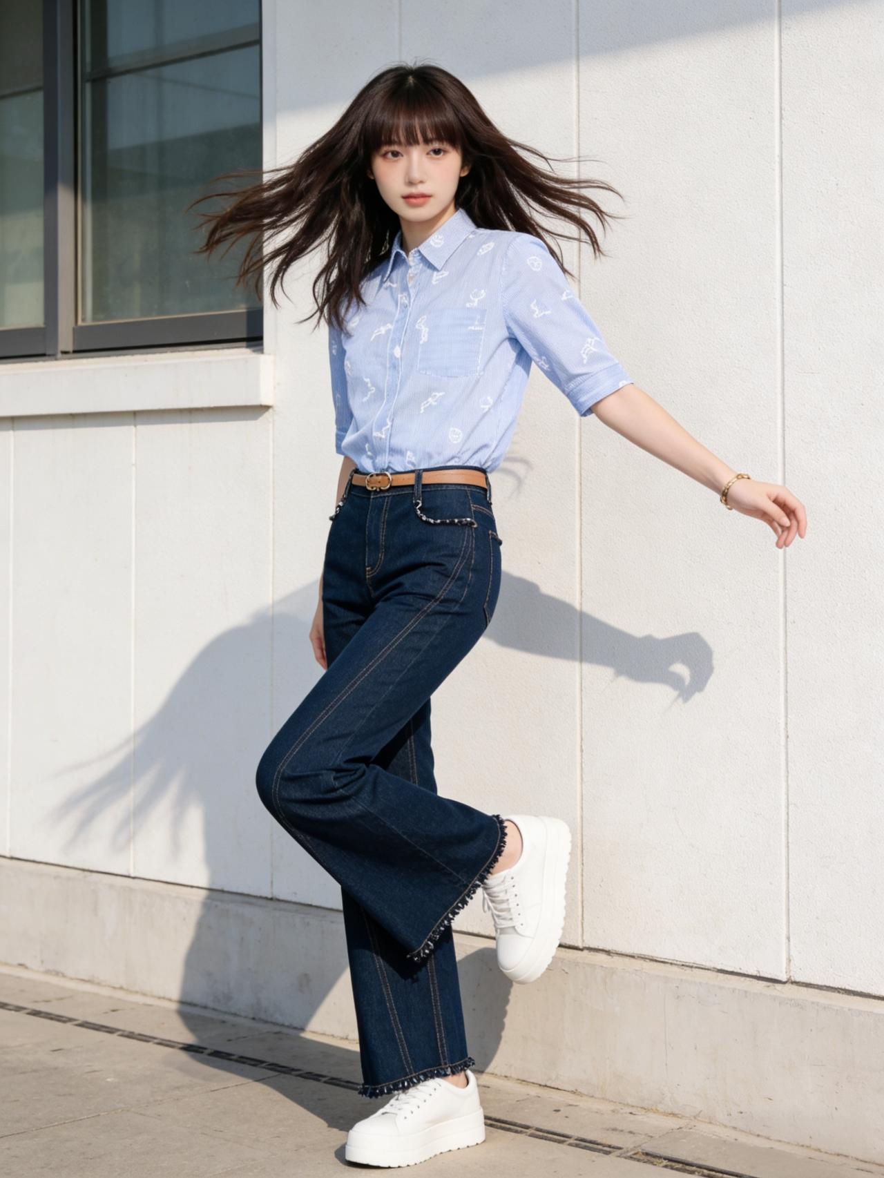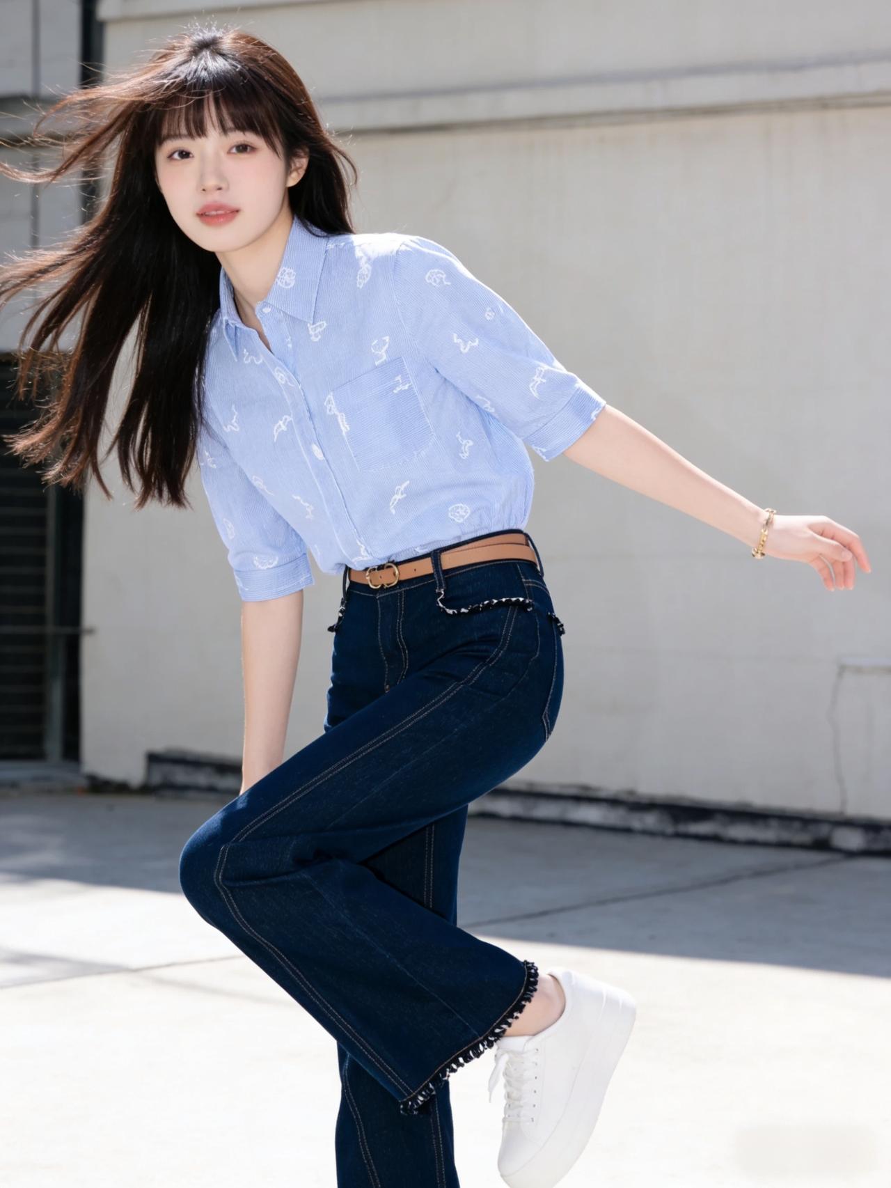 午后的阳光透过树叶的缝隙,斑驳地洒在街道上。她就这样出现了,像一阵清爽的微风。身上那件浅蓝色的花衬衫,随着她的动作轻轻摆动,仿佛上面印着的不是花朵,而是细碎的星光。下身搭配一条经典的深蓝色牛仔裤,利落又随性,勾勒出少女独有的朝气。 她走路带风,步伐轻盈得像是踩在琴键上,每一步都跳跃着快乐的音符。没有繁重的行囊,也没有匆忙的焦虑,她的世界里只有眼前的风景和自由自在的呼吸。这就是青春最原本的模样,热烈、明亮,且无拘无束。如何穿出职场女神范? 时尚穿搭 校园少女风衬衫 温柔风衬衣女