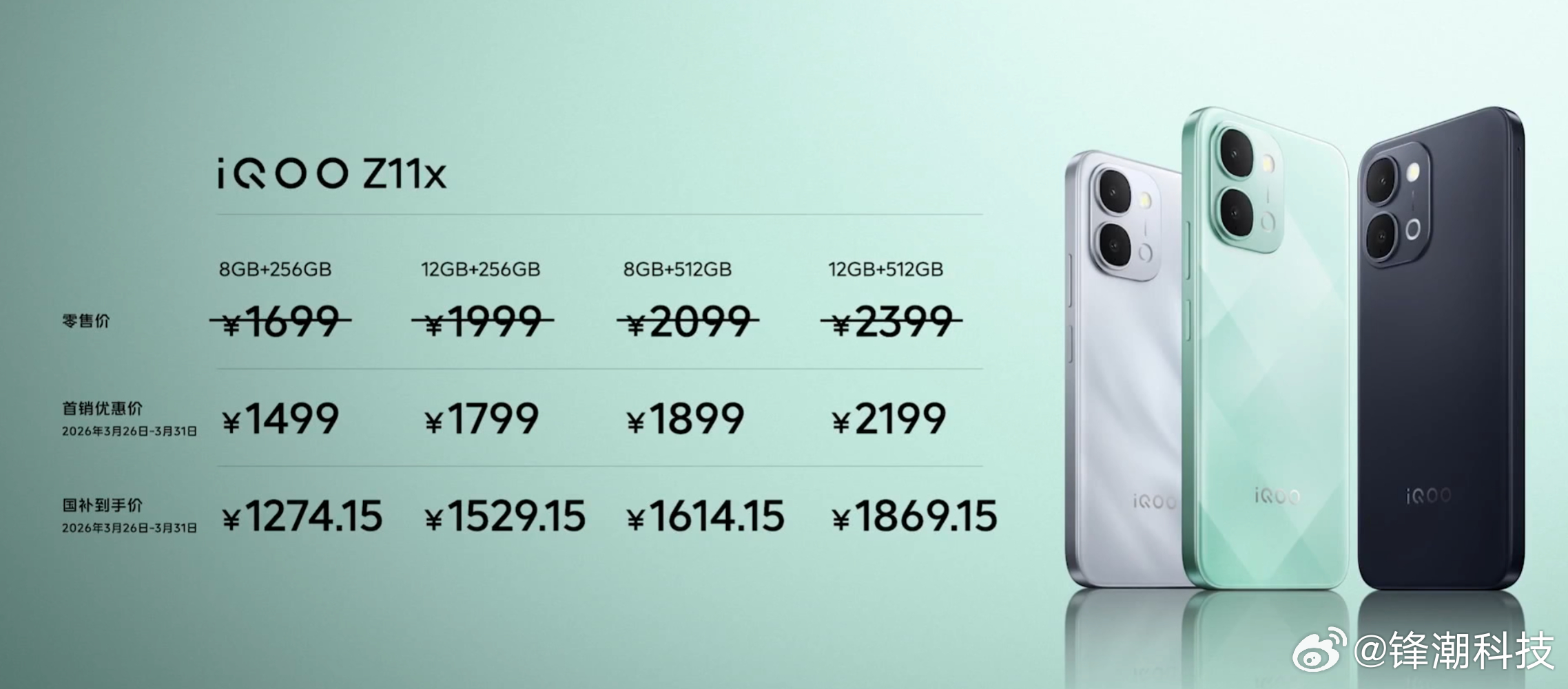 iQOO Z11系列正式发布,价格:-iQOO Z11, 8+256GB,199