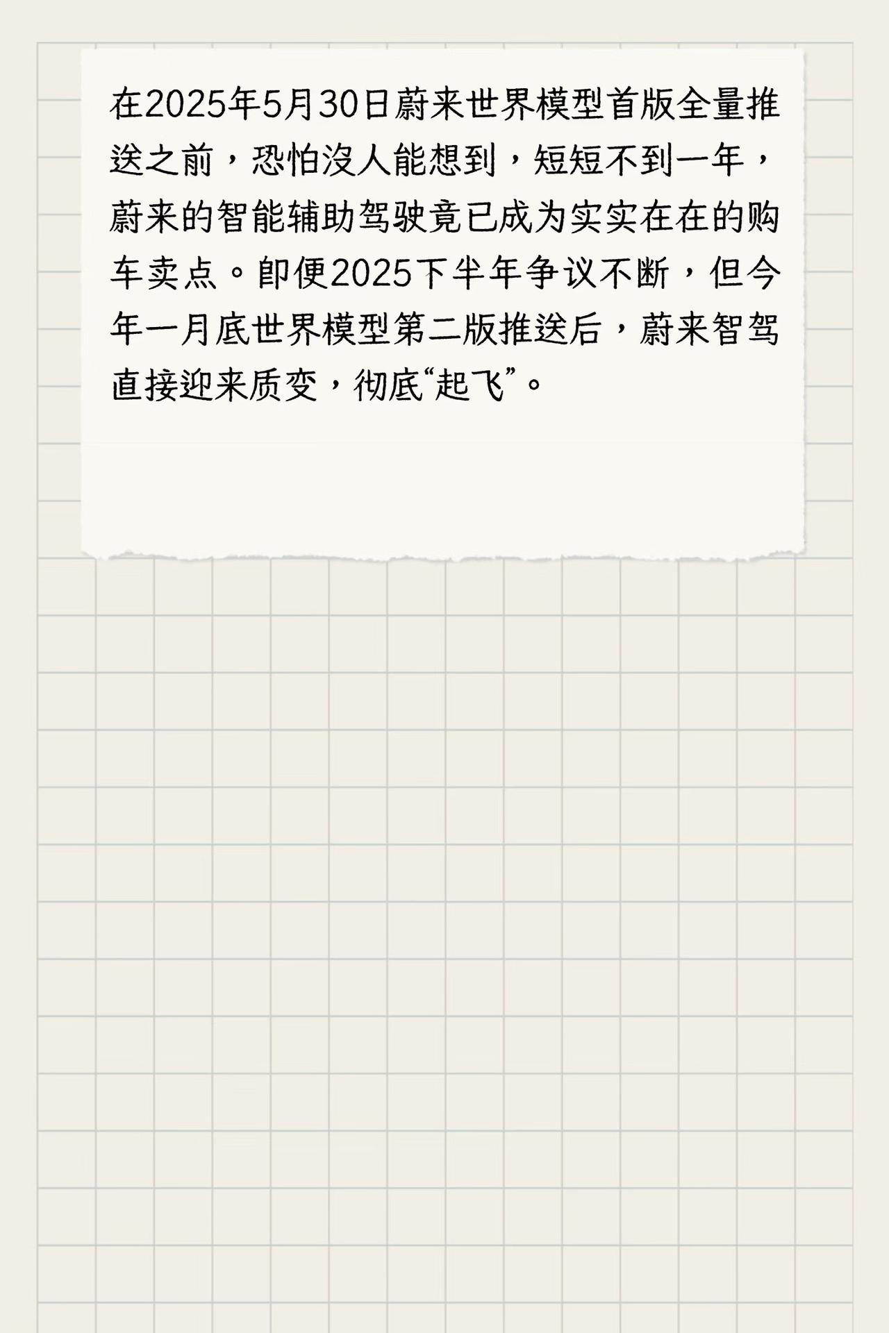 蔚来世界模型升级后,智能辅助驾驶已成核心卖点 在2025年5月30日蔚来世界模型