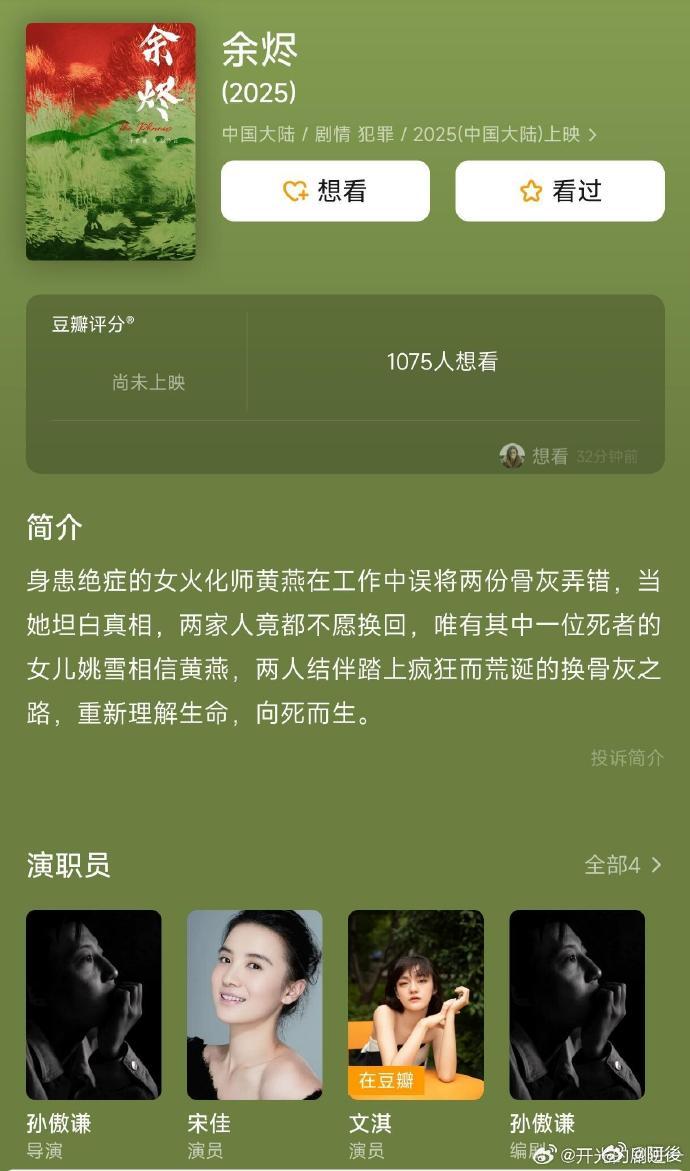 宋佳寸头海报 越看越期待宋佳的演绎🥸饰演火化师黄燕,触碰生死题材,光是人物设定就足够有张力,坐等上映💥