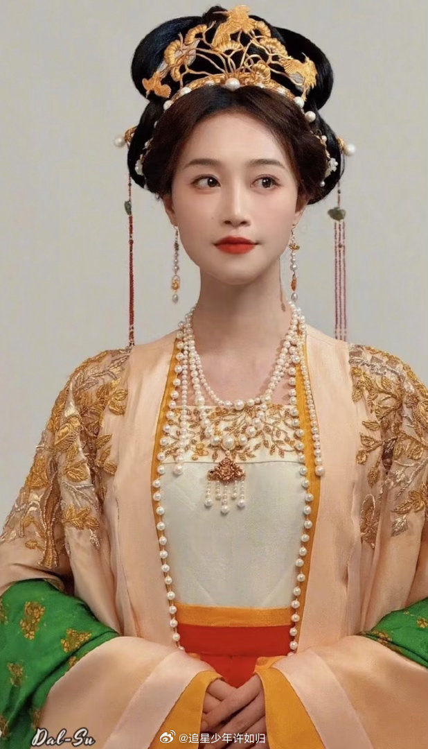 蓝盈莹还原2000年前的美 有人说古装造型看多了都差不多,但蓝盈莹这套不一样。孔雀蓝曲裾深衣本身就少见,搭配金线云纹和红边撞色,既有历史感又有视觉冲击力。发髻上的金饰玉簪不是随便插的,每一件的形制和位置都有讲究。她的妆面也克制,只强调眉眼的古典轮廓,没有现代审美的痕迹。站在镜头前的蓝盈莹,像是从2000年前的壁画里走出来的人,带着那个时代特有的庄重和神秘。