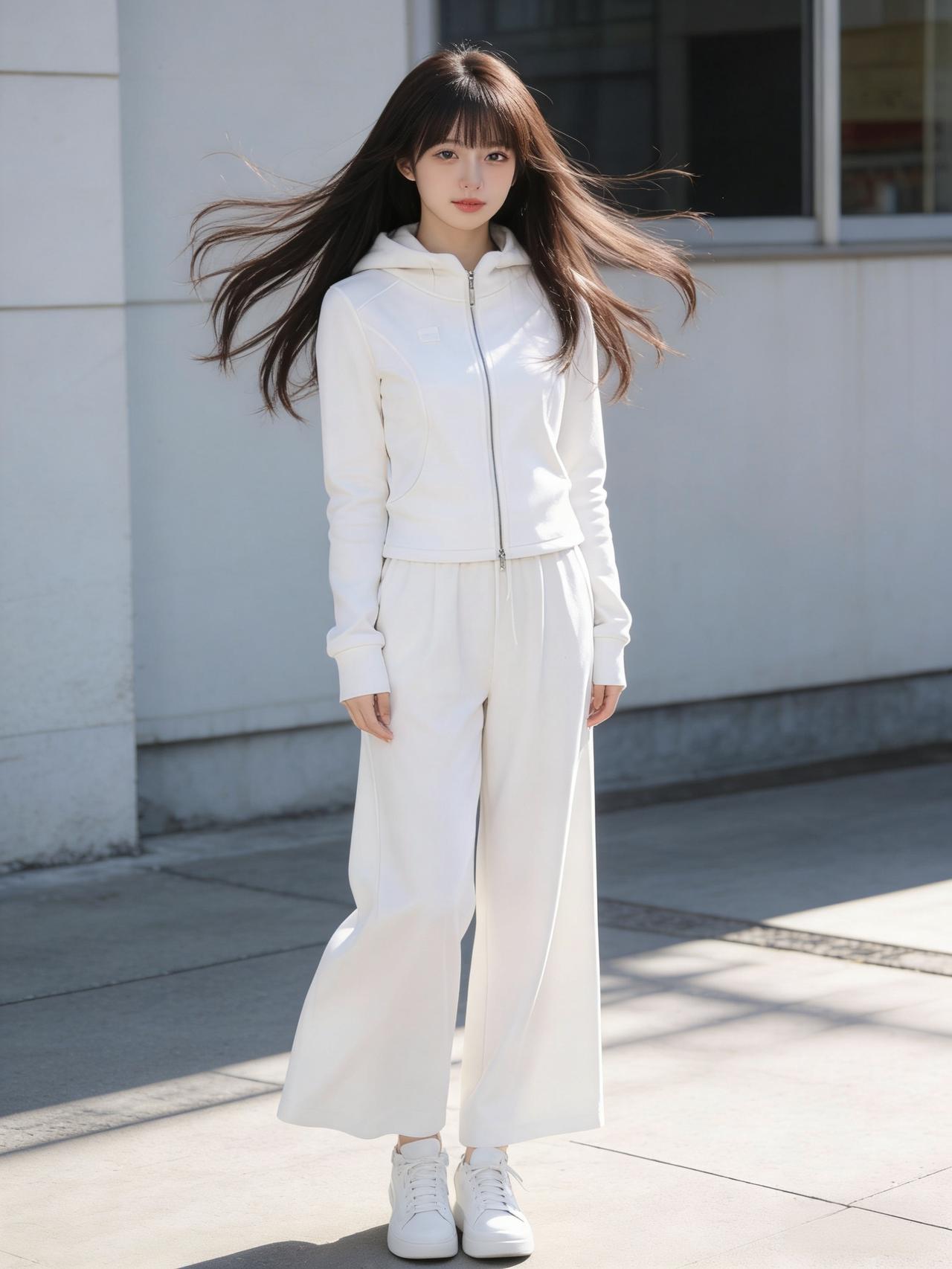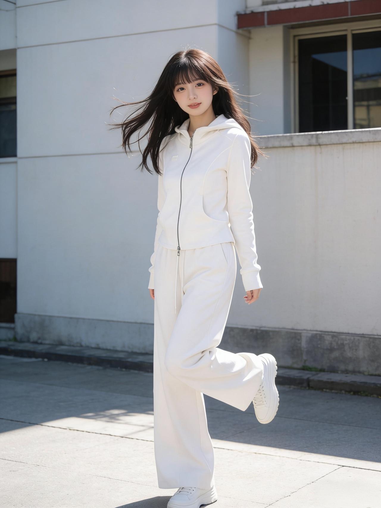 一身极简的白色运动套装,剪裁流畅,没有多余的修饰,却完美衬托出她挺拔的身姿。面料在阳光下泛着细腻的光泽,显得干净而高级。她没有佩戴繁复的饰品,只扎着高马尾,发丝在风中轻扬,透着满满的元气。 这身穿搭摒弃了喧嚣的色彩,回归了最本真的时尚。她自信地行走,每一步都踏出了青春的节奏,仿佛整个人都在发光。这种简约而不简单的美,正是阳光下最动人的风景。白色减龄穿搭 简约白色穿搭 气质运动穿搭 白色运动穿搭 简约运动风穿搭 白色温柔穿搭 高级白色穿搭 上班如何穿好看又得体?