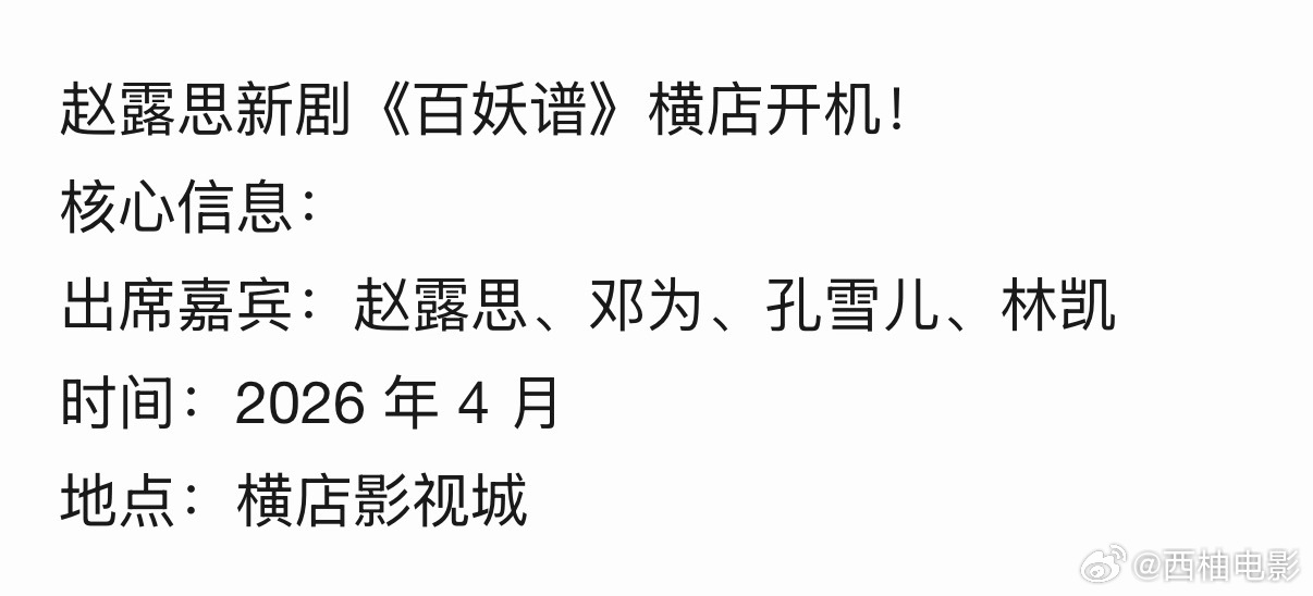 孔雪儿林凯出演郭敬明新剧百妖谱 郭敬明新剧《百妖谱》横店开机!核心信息:出席嘉宾:赵露思、邓为、孔雪儿、林凯时间:2026 年 4 月地点:横店影视城这部剧是郭敬明古装四部曲中最后一部