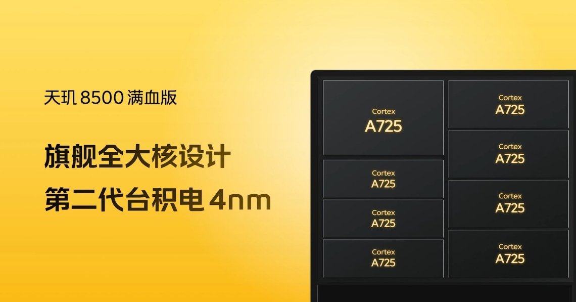 ①搭载天玑8500满血版:旗舰同款全大核设计,第二代台积电4nm工艺,在性能与功耗之间实现绝佳平衡;搭载Cortex新款八核A725,比起A720能效更加领先。②Monster超核引擎:「先知调度器」避免程序拥堵和等待问题;「闪电加速器」让游戏表现如飞机冲破音障般迅猛流畅。③综合性能跑分超262万,开黑丝滑到底!