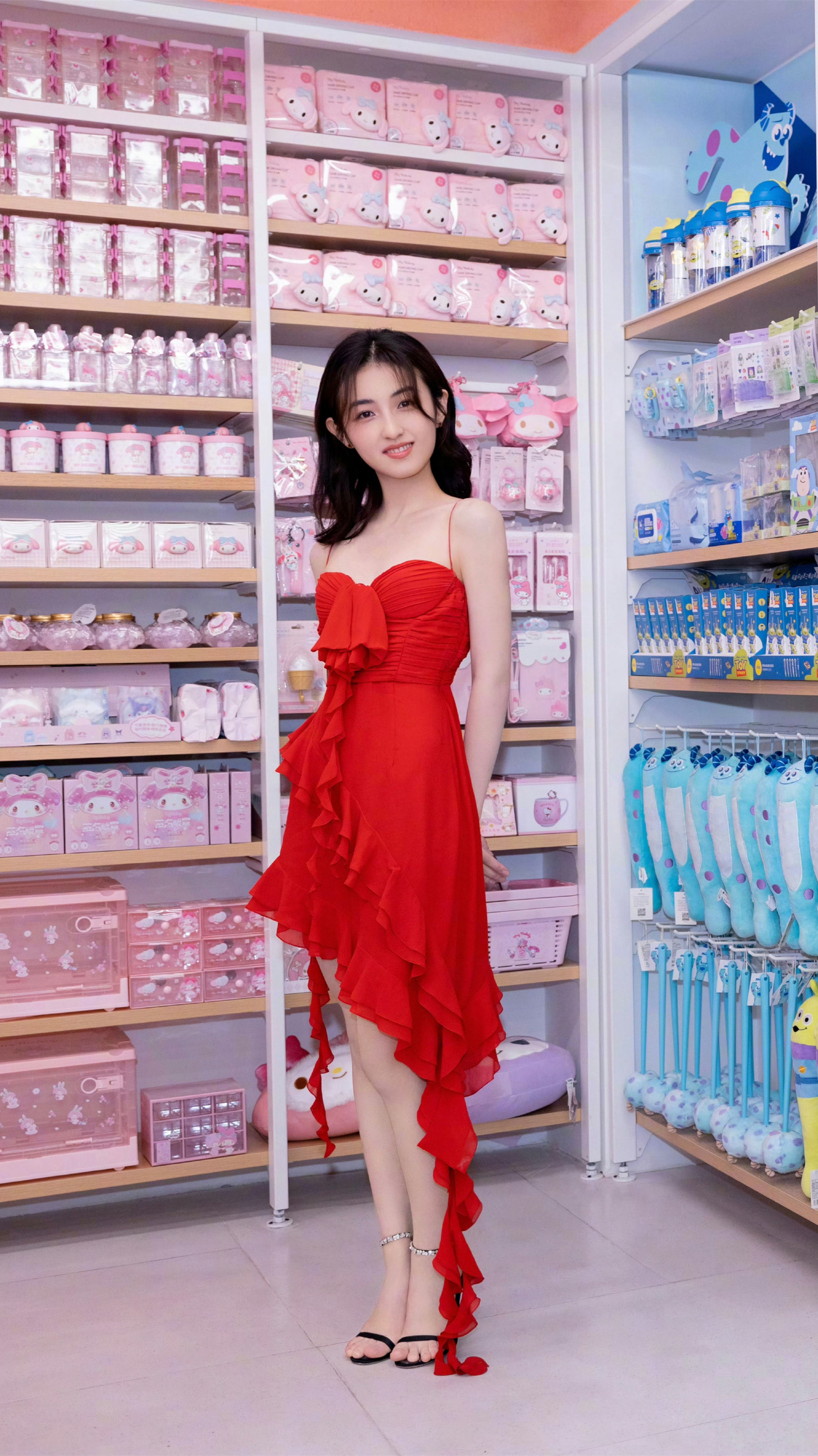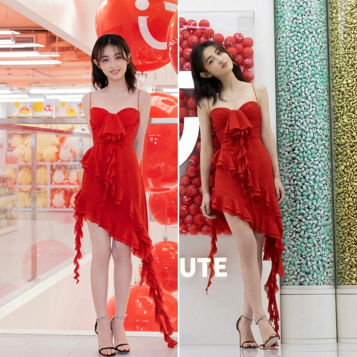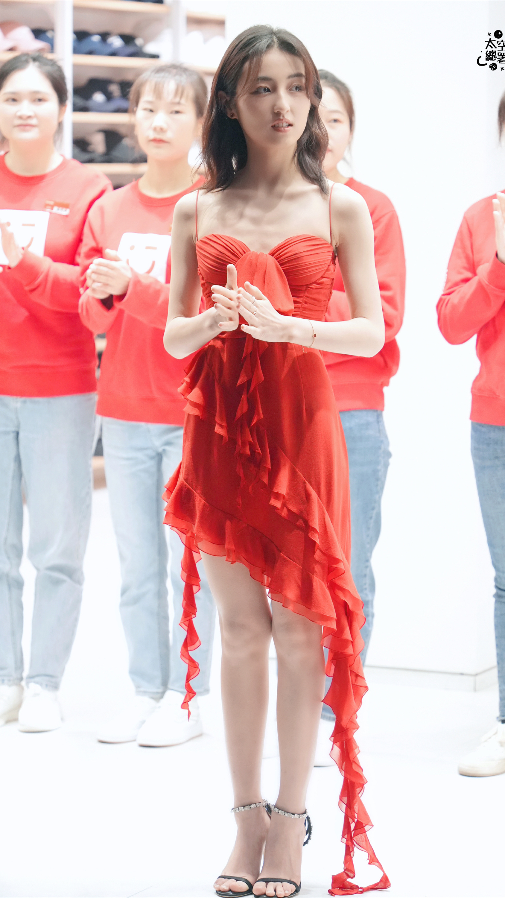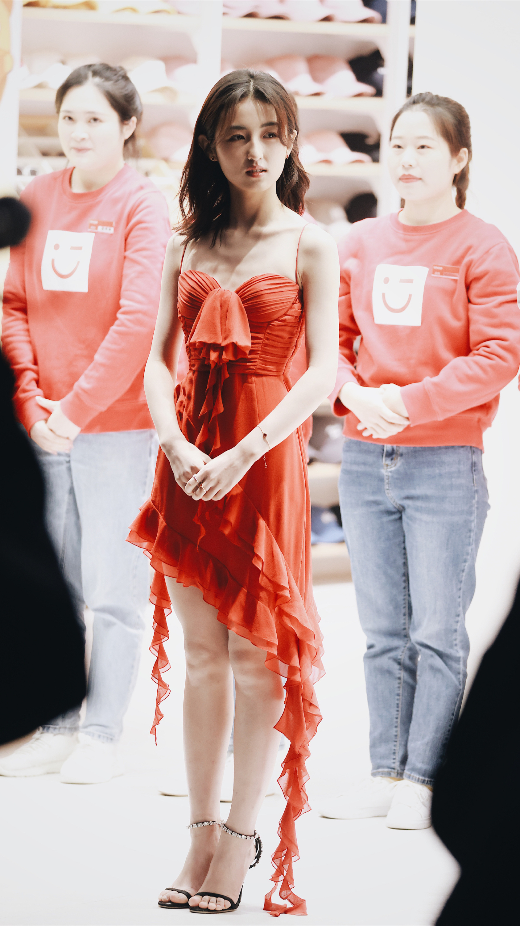 张子枫:红裙高跟美腿。张子枫