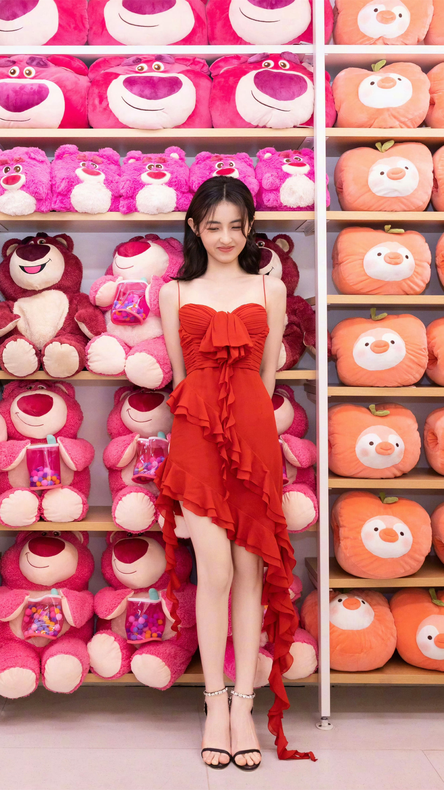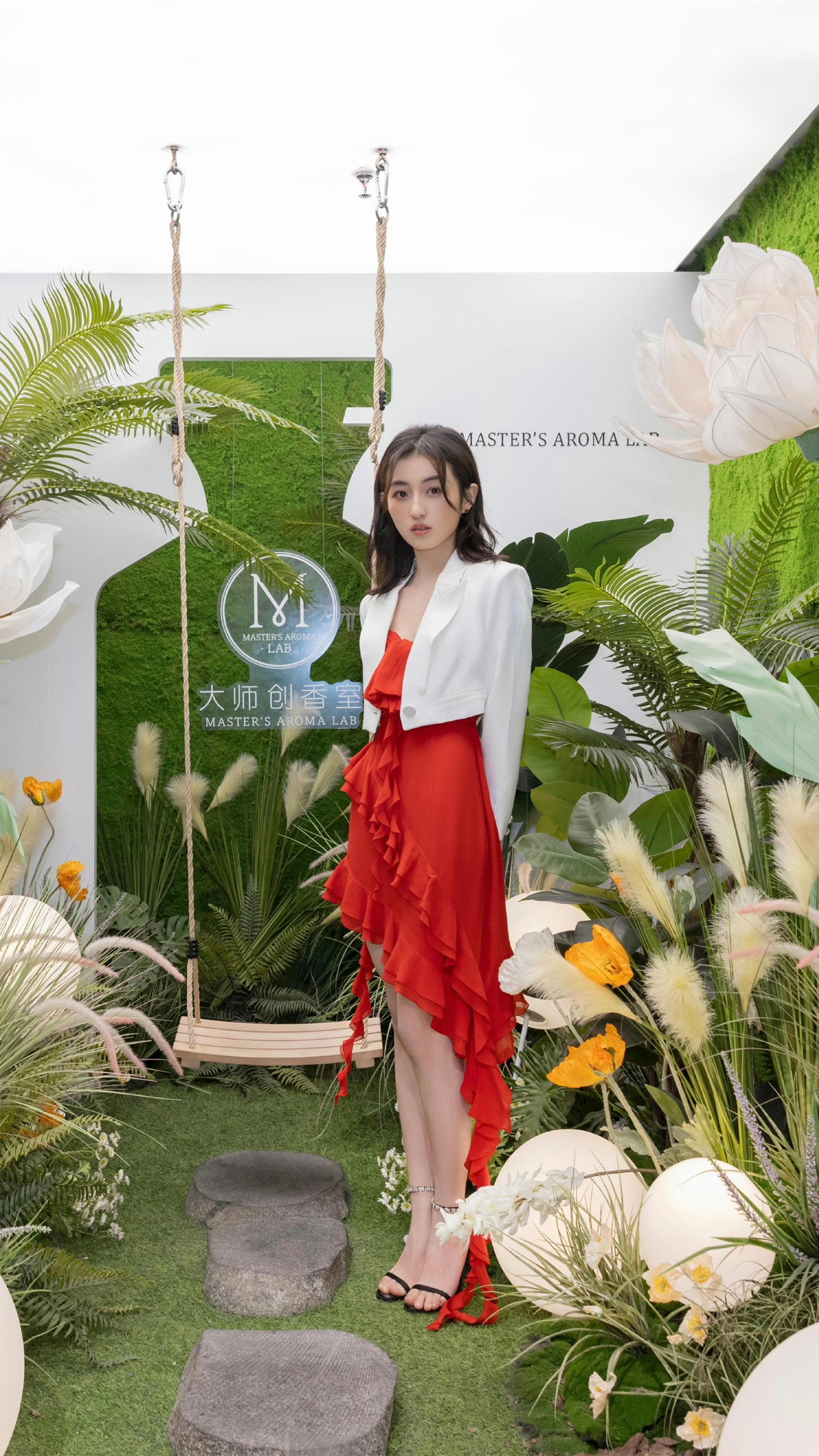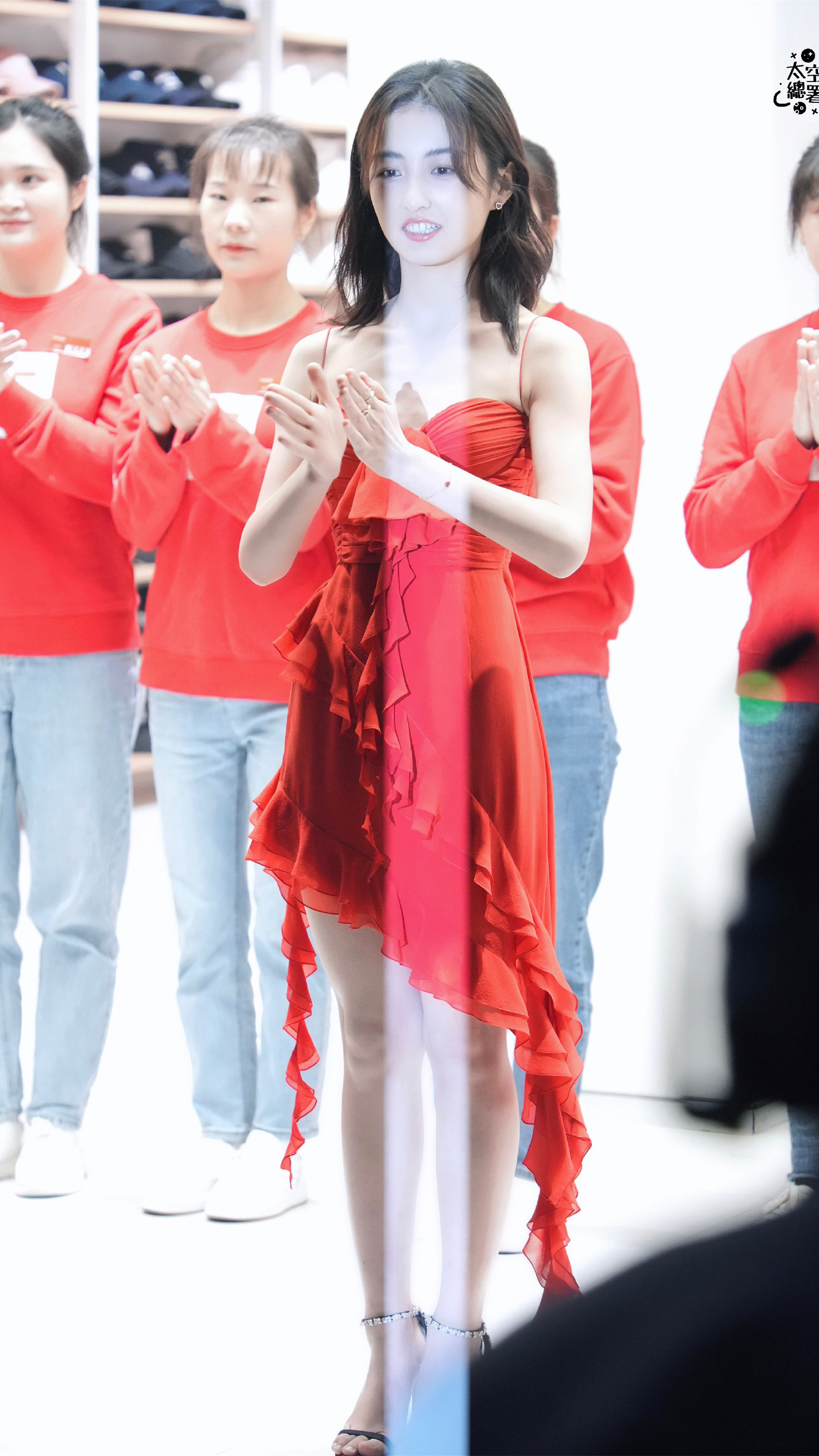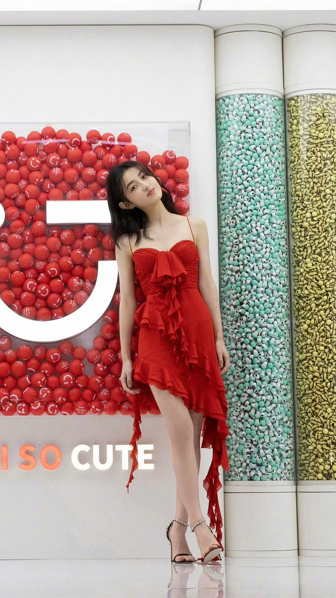 张子枫:红裙高跟美腿。张子枫