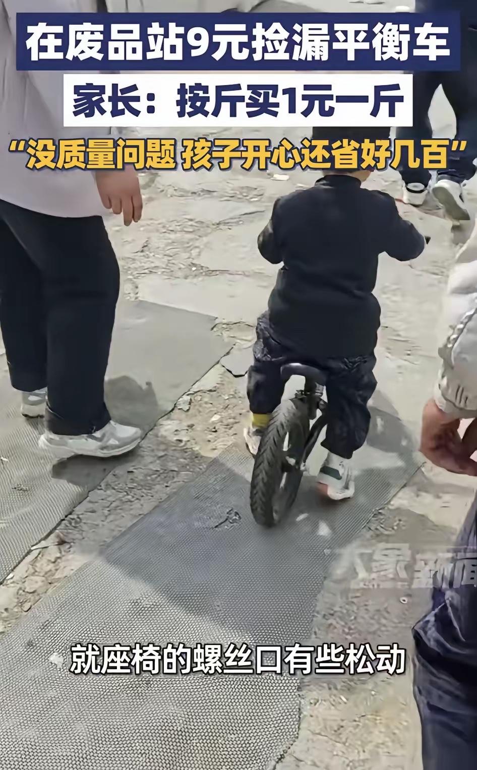 真是意外收获!河南许昌,一妈妈与儿子经过一家废品收购站时,儿子意外在废品里看中了一辆平衡车。随即妈妈跟着儿子上前查看平衡车,发现这车确实不错,只是座椅的螺丝口有些松动,拧紧之后就能够正常玩耍了,并没有什么大的质量问题。更让妈妈意外的是,妈妈询问老板平衡车怎么卖时,老板竟说“一块钱一斤,按斤算”,之后整车称下来也就九斤重,仅9元钱就买了下来! 那天是周末,妈妈本来带着儿子去附近超市买东西,抄近路走了平时很少走的小巷子,才路过这家废品收购站。巷子不宽,废品站门口堆着捆得整整齐齐的纸壳,码得高高的塑料瓶,旁边零散靠着几辆旧自行车、旧童车,蒙着一层薄灰。儿子刚上小学,平时对各种带轮子的玩具走不动道,隔着老远就眼睛一亮,拽着妈妈的衣角往废品站里冲,嘴里喊着妈妈你看,那里有平衡车。 妈妈一开始还有点犹豫。废品站里东西又脏又乱,怕有安全隐患,想拉着儿子走。可儿子脚步快,已经跑到平衡车旁边,小手摸着车把不肯放,眼睛里全是期待。妈妈没办法,只能跟着走过去,蹲下来仔细打量这辆车。车身是蓝白配色,外壳没有明显磕碰划痕,轮胎纹路都还清晰,看着几乎没怎么用过,唯独座椅晃悠悠的,坐上去不稳当。 妈妈找老板借了一把十字螺丝刀,把座椅拆下来看。就是固定座椅的螺丝滑丝了,螺丝口有点松,不是什么大毛病。她从包里翻出之前给儿子修玩具剩下的备用螺丝,换上去拧了几圈,座椅立马就稳当了。试着按了下车身上的开关,没想到车子居然还有电,指示灯亮了起来,车轮轻轻一转就动了,自带的灯光、蓝牙音箱都能正常出声。 儿子当场就蹦了起来,围着平衡车转了好几个圈,拉着妈妈的手说想要。妈妈心里犯嘀咕,这么新的平衡车,就算二手的少说也得几百块,怕价格太贵,又不想扫儿子的兴,硬着头皮喊来废品站的老板,问这车怎么卖。 老板是个五十多岁的大叔,手里正拿捆扎带捆纸壳,抬头看了一眼,随口就说,一块钱一斤,按废铁价算。妈妈当时就愣住了,以为自己听错了,又追问了一遍。大叔笑着说,这东西是前几天有人当废品卖过来的,放我这也占地方,没人要最后也是当废金属处理,能卖几块是几块,不亏就行。 大叔拿来磅秤,把平衡车放上去一称,刚好九斤重。妈妈扫码付了九块钱,拿着车的时候,手都有点不敢相信。儿子抱着平衡车,一路上都不肯撒手,连平时最爱吃的冰淇淋,都没心思看了,一门心思就想赶紧回家试试车。 回到家,妈妈把平衡车里里外外擦了三遍,消了毒,又给车子充满了电,试骑了一圈,刹车、调速、续航都完全正常。她上网搜了一下同款平衡车,全新的要六百多块,就算九成新的二手款,也要三百多,自己九块钱拿下,真的是捡了个实实在在的大漏。 妈妈把这段经历拍成视频发在网上,很快引来了几十万网友的围观,评论区直接炸了锅。很多网友晒出了自己的同款经历,有人在废品站五块钱买了几乎全新的滑板车,有人十块钱淘到了能正常用的折叠自行车,还有人二十块钱收了个品牌电饭煲,换了个小零件就用了好几年。也有网友说,现在很多人都太浪费了,东西只是有点小毛病,或者用腻了,就直接当废品扔了,其实稍微修一修,就能接着用,太可惜了。 妈妈自己也说,平时给儿子买玩具,总想着买贵的、新的,觉得这样才安全放心,可这次九块钱的平衡车,儿子比收到几百块的玩具还要开心。更难得的是,儿子通过这件事知道了,东西坏了不是只能扔掉,修一修就能重新用,也懂了节约不是丢人的事,比平时跟他讲一百遍大道理都管用。 我们总觉得,好的生活就要买新的、贵的,总觉得二手的、废品站里淘来的东西拿不出手。可生活里的小惊喜,从来都不是靠钱堆出来的。那些被人随手扔掉的东西,换个主人,花点心思,就能重新发挥价值,这不是抠门,是对生活的认真,也是对资源的珍惜。 各位读者你们怎么看?欢迎在评论区讨论。